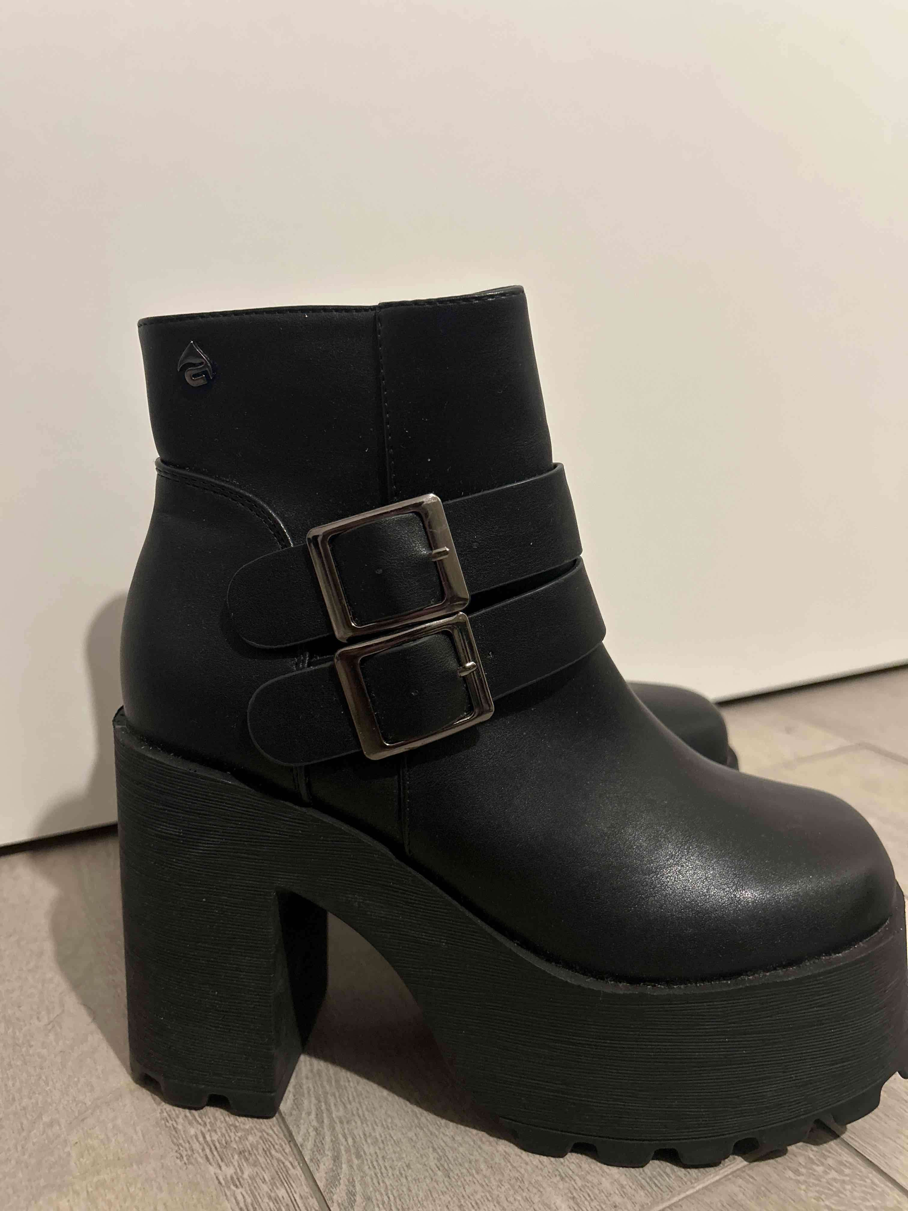 Botines negros modernos con doble hebilla. Suela gruesa y diseño elegante. Perfectos para salidas casuales.