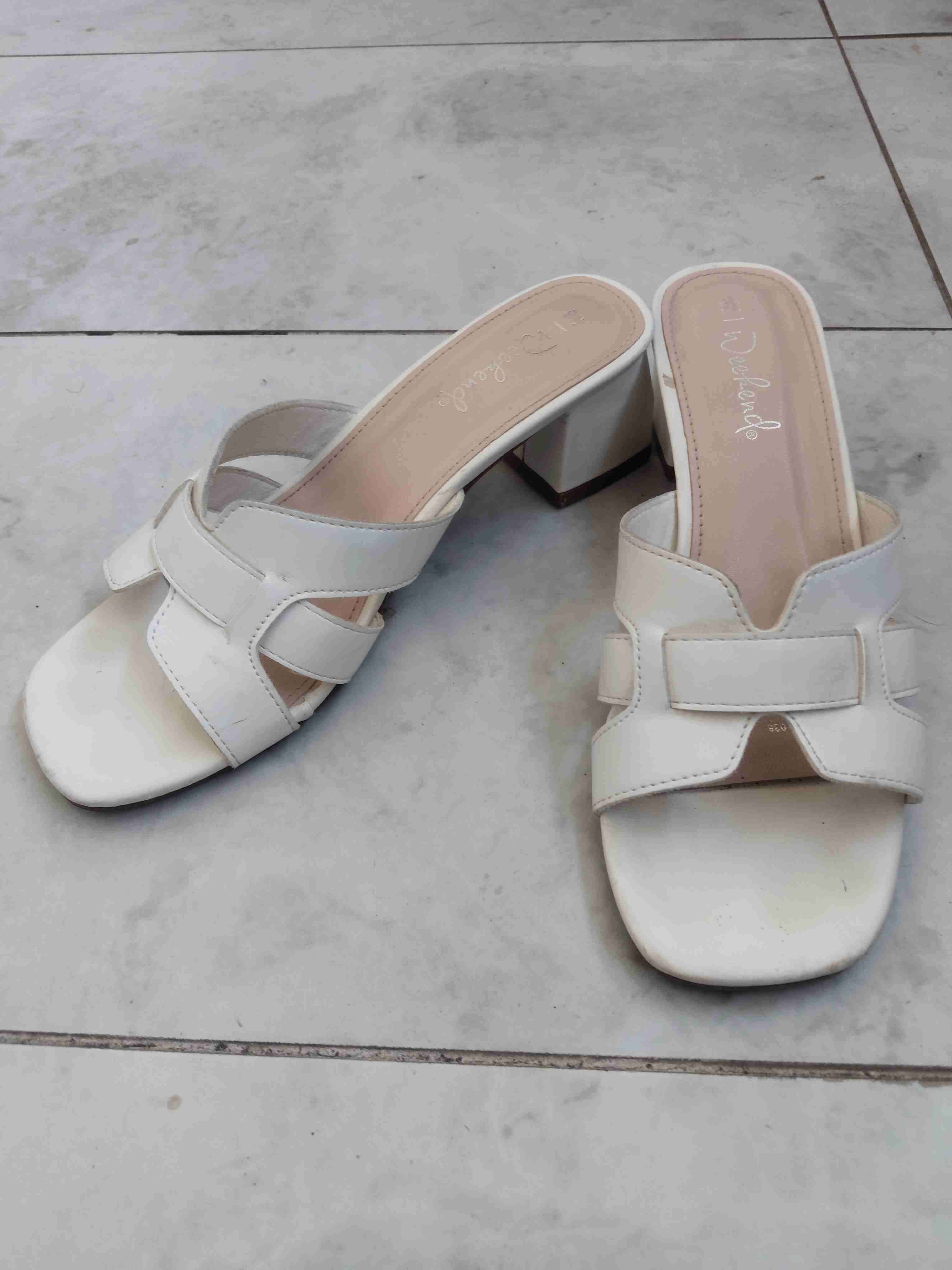 Sandalias blancas estilo casual con taco ancho, perfectas para el verano. Buen estado general con leves signos de uso.