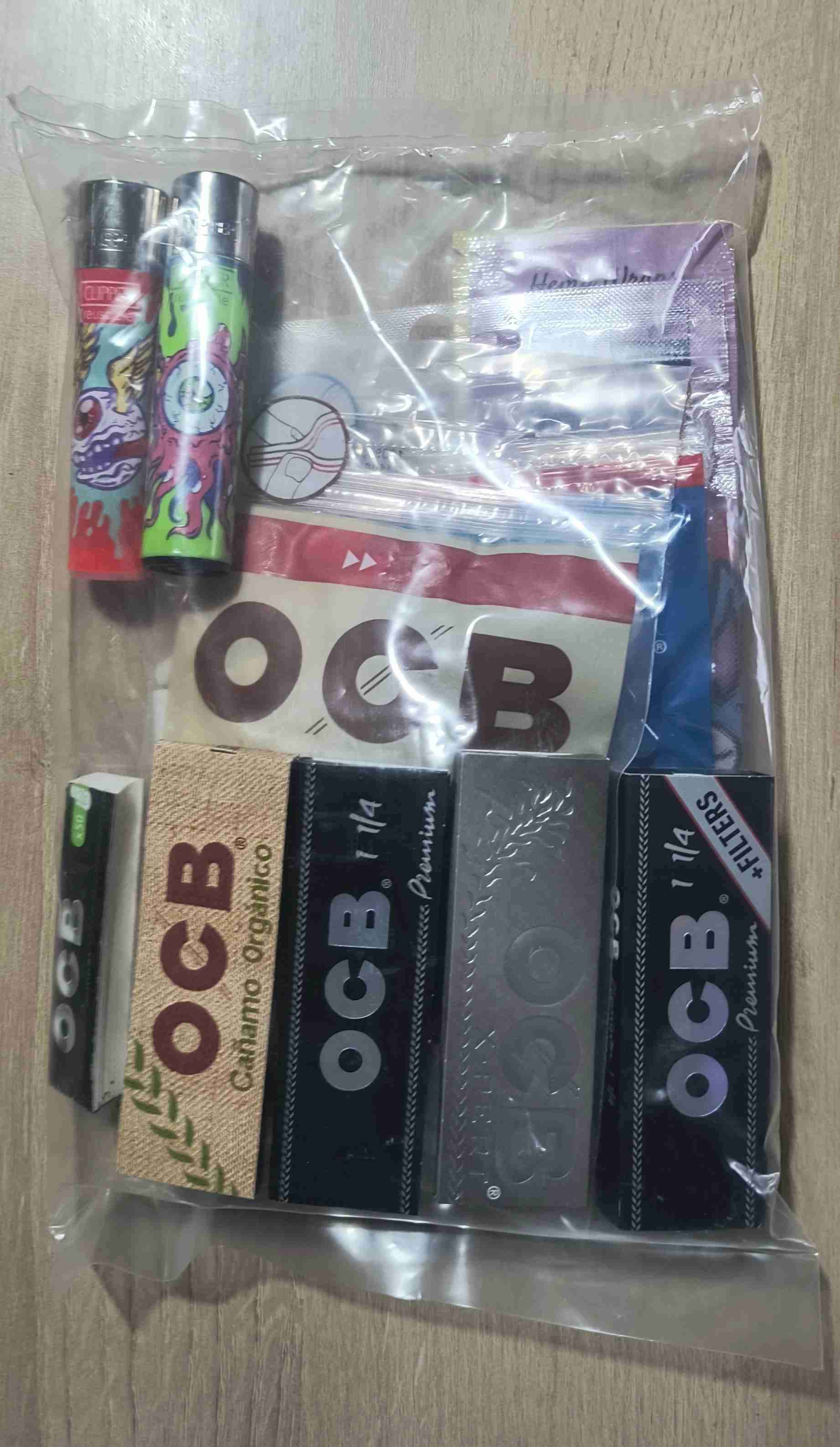 Completo kit para fumadores con papeles OCB y encendedores, ideal para tus momentos de relajo. Buen estado.