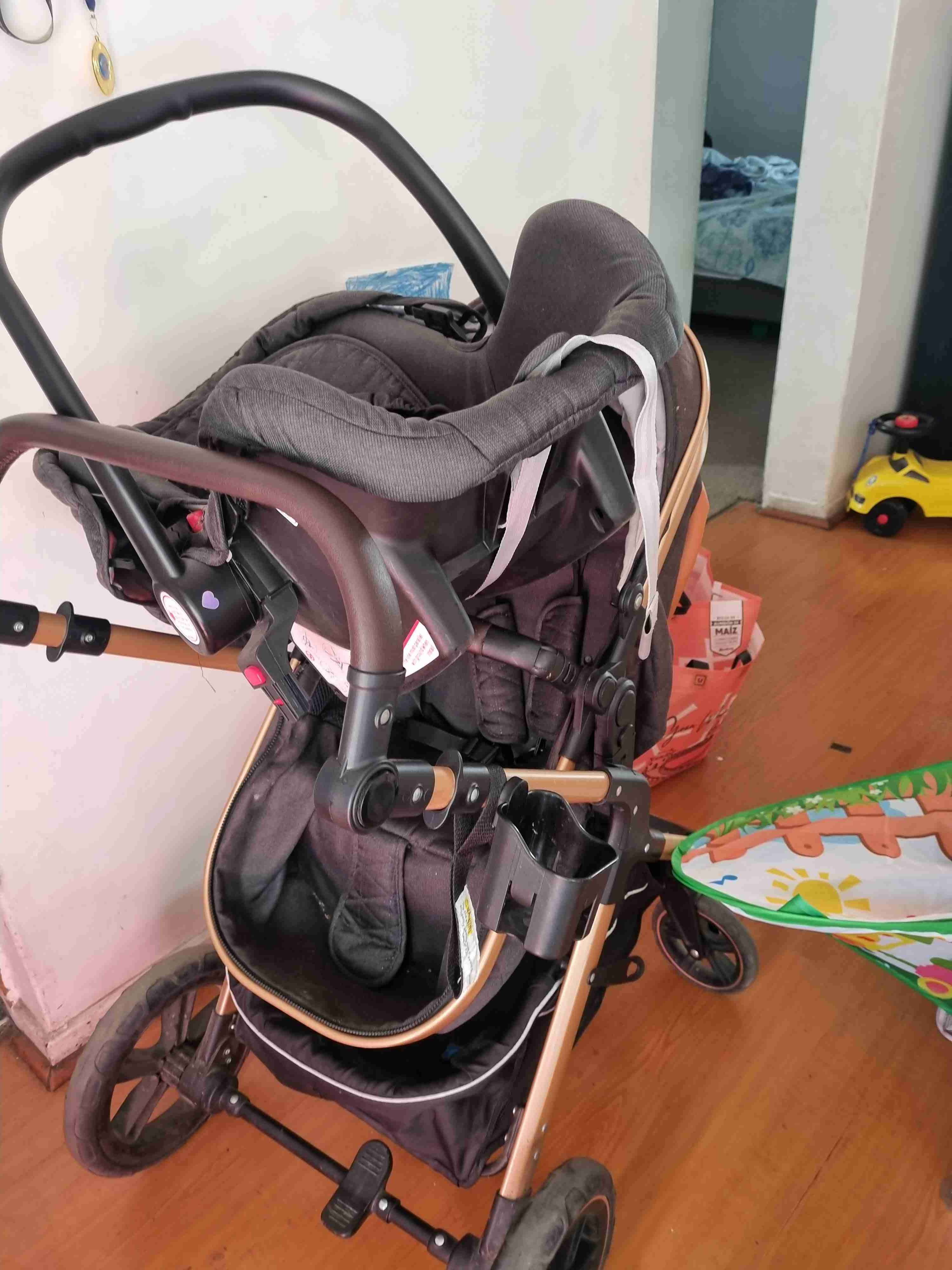 Coche de bebé en buen estado, color negro con detalles dorados. Ideal para paseos diarios. Va con huevito