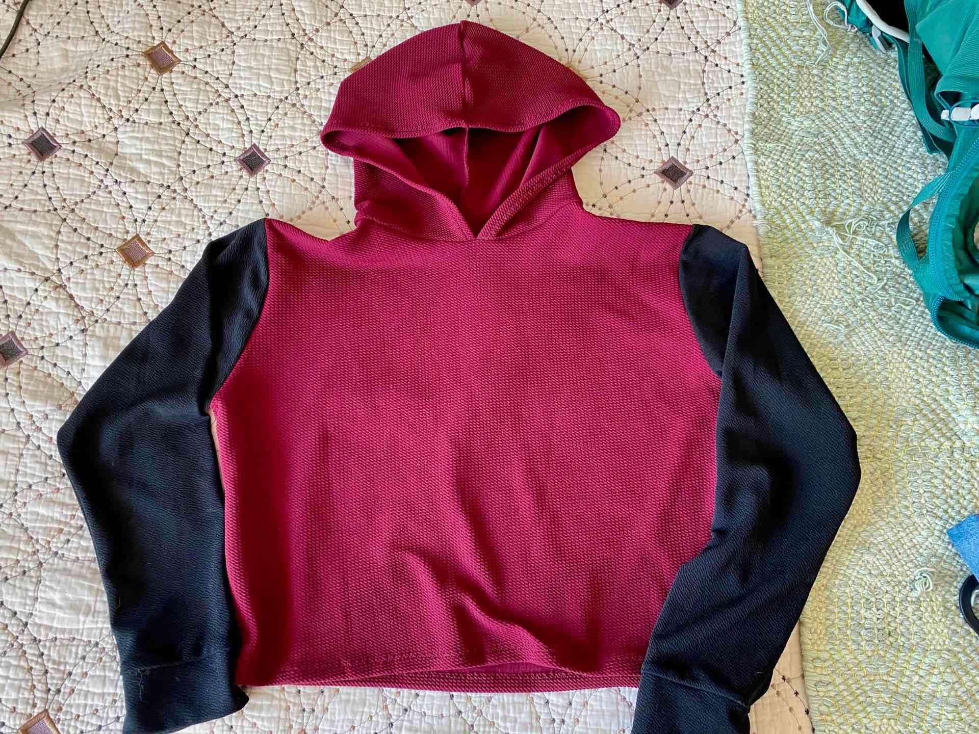 Polerón rojo con mangas negras. Ideal para días frescos y casuales. Buen estado general.