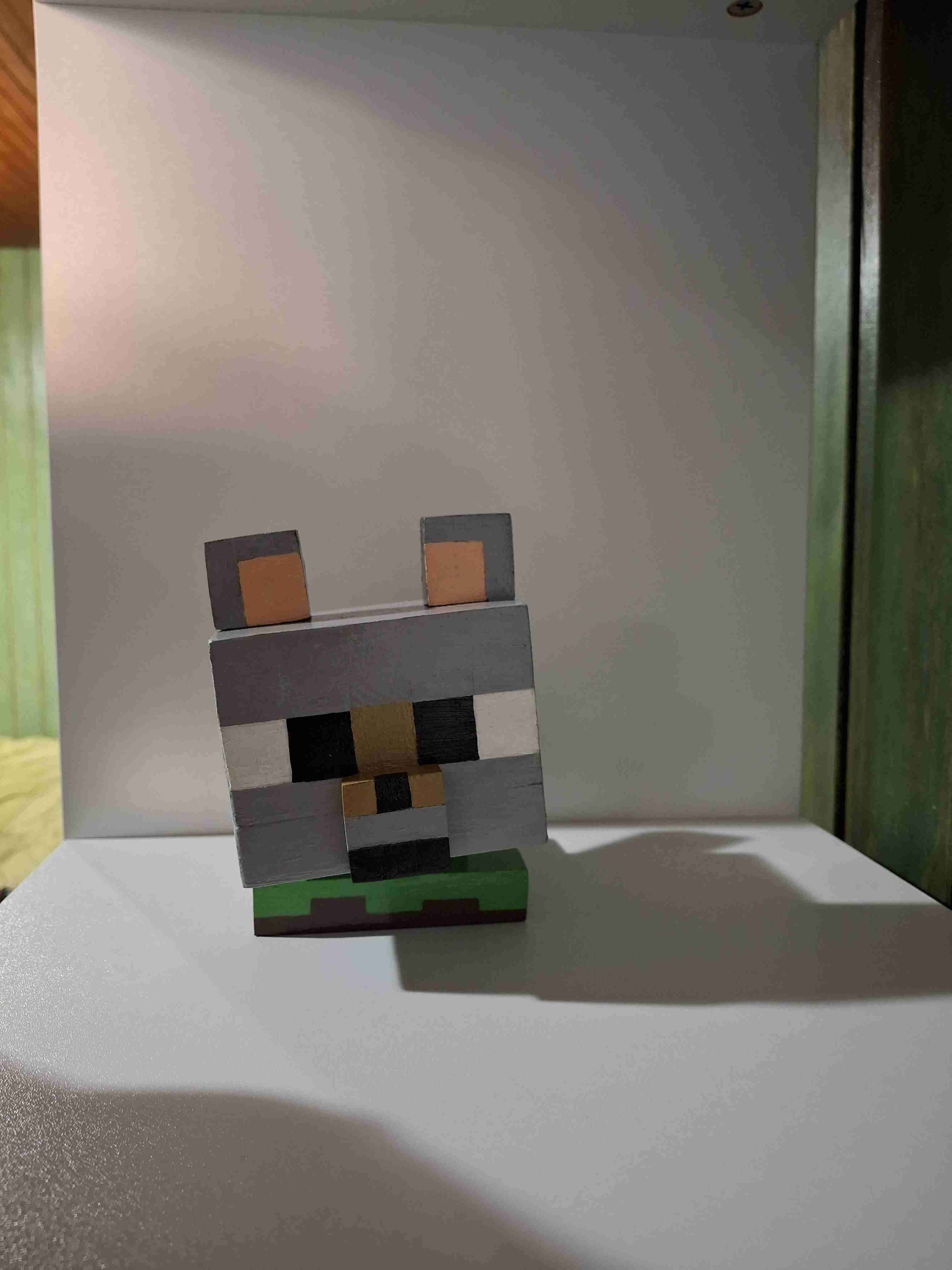 Figura artesanal de madera barnizada y hecha a mano, estilo pixelado. Ideal para decoración de escritorio. Buen estado. Medidas: 16cm de alto 10cm de ancho
