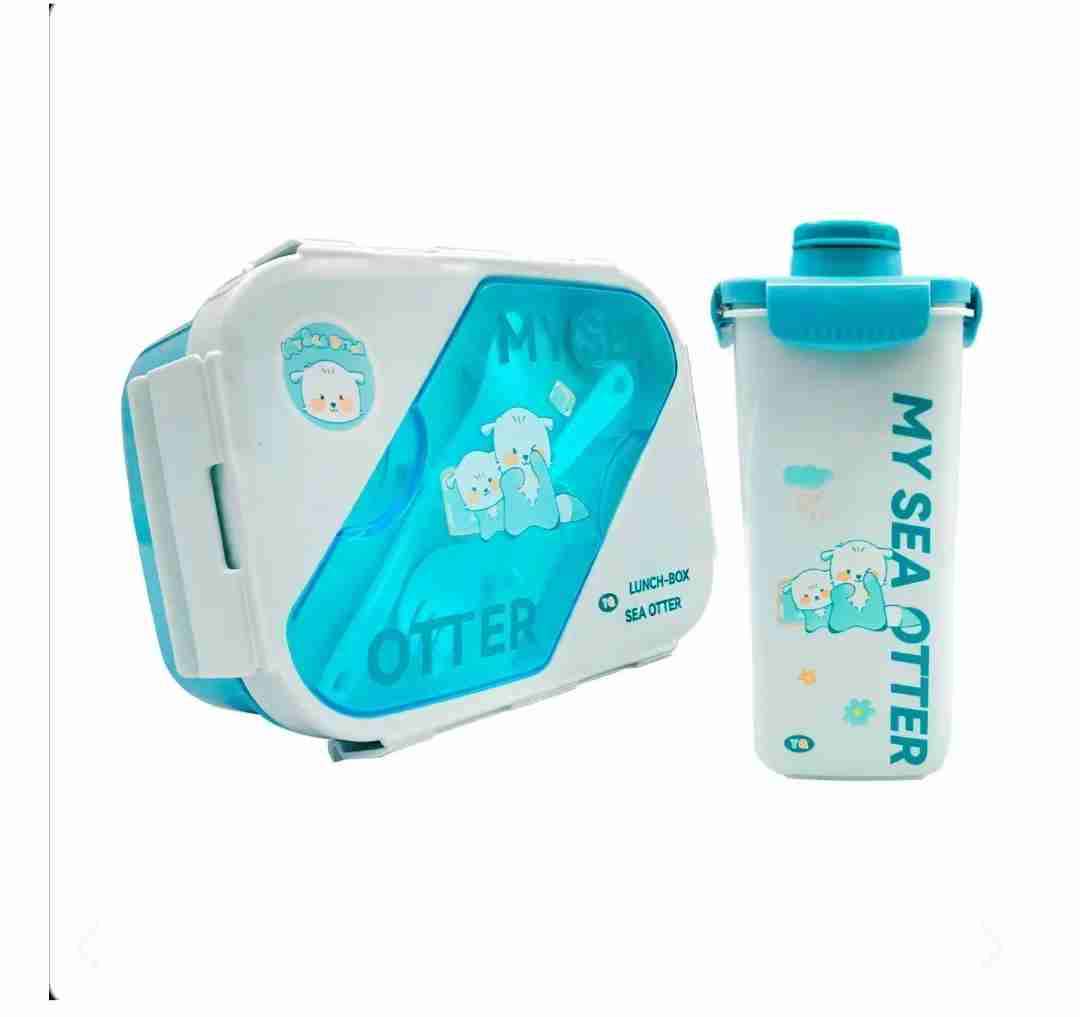 Set de lonchera y botella con diseño de nutrias. Ideal para llevar al colegio o la oficina. Estado impecable, nuevo.