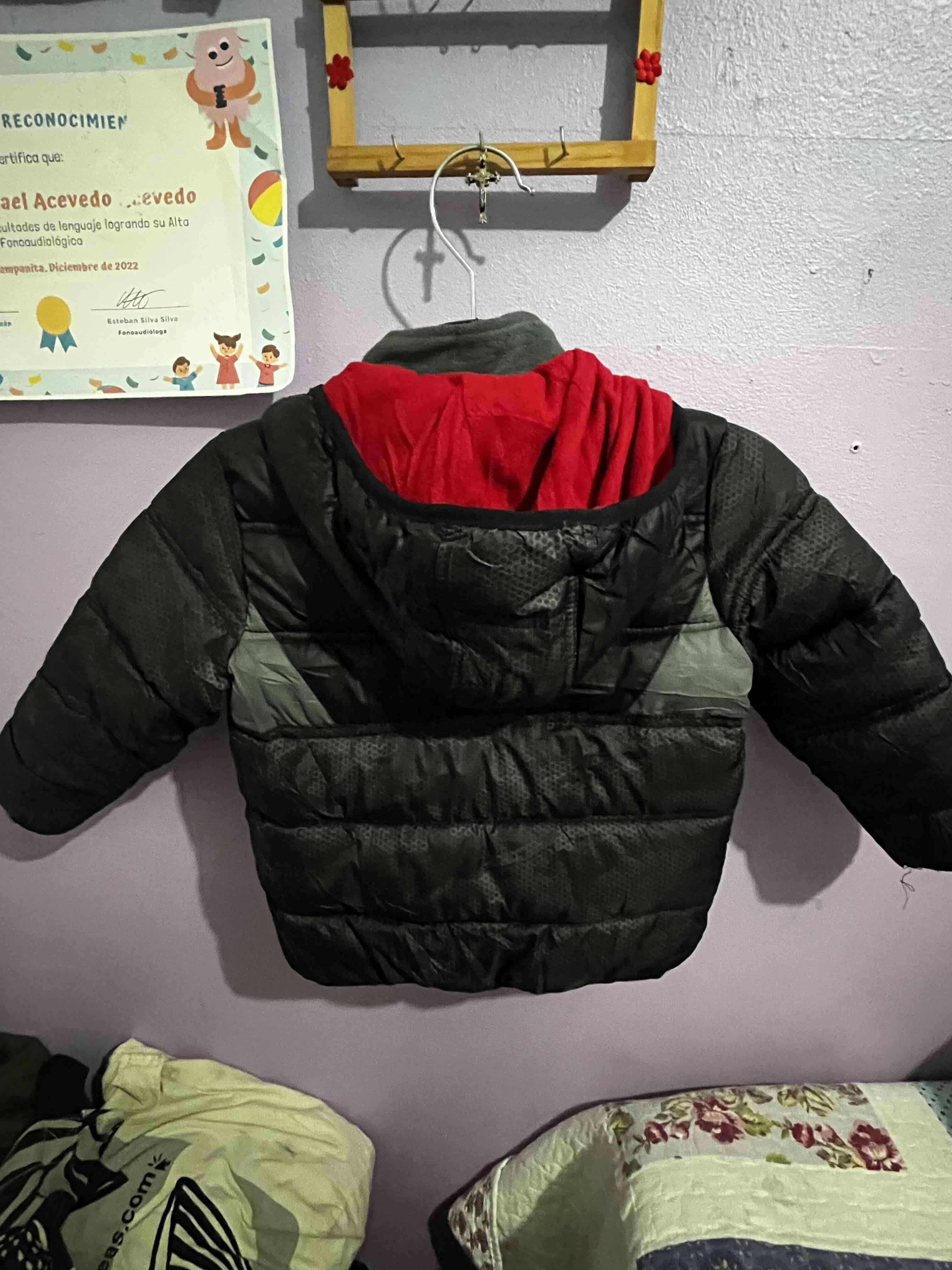 Chaqueta para niño con capucha, ideal para días fríos. En buen estado, con detalle rojo en el interior. Interior de polar Talla 4 En excelente estado.