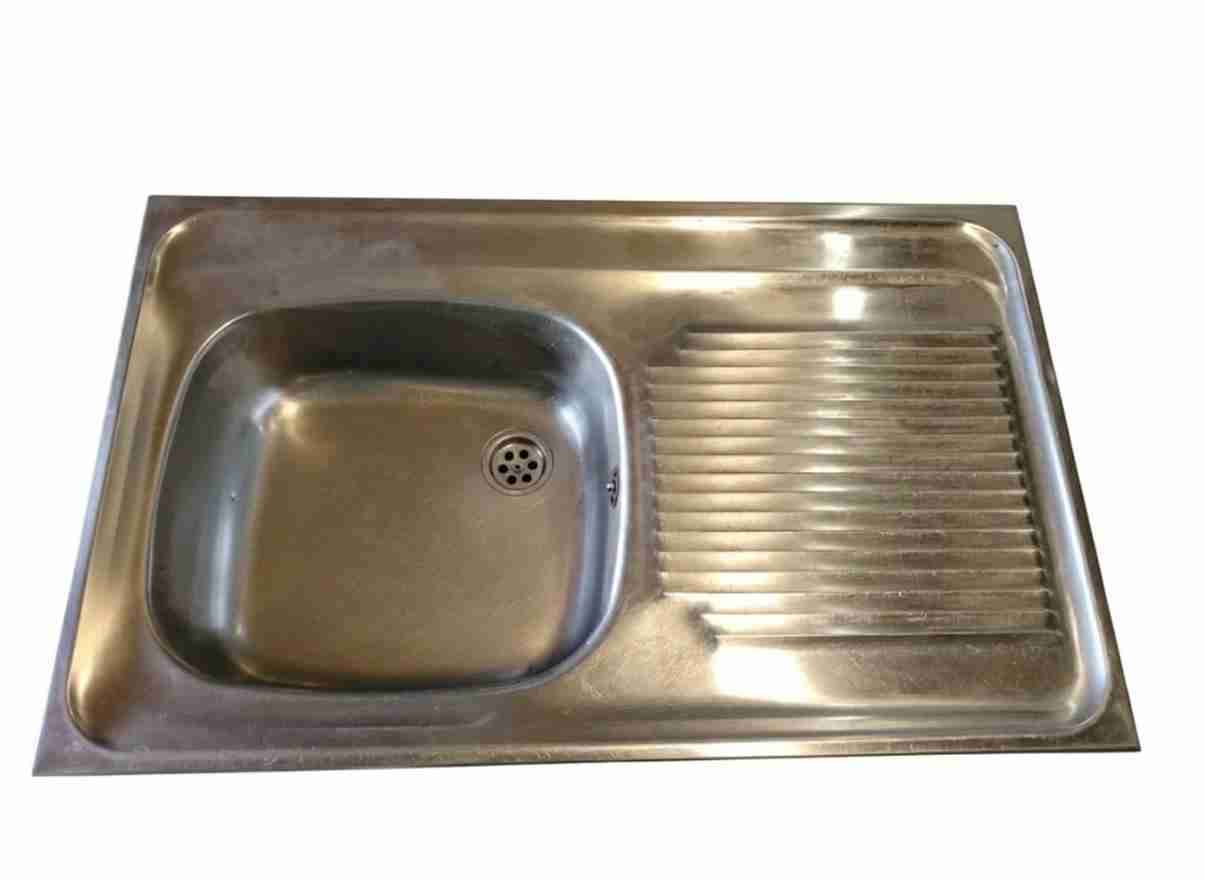 Lavaplatos de acero inoxidable en buen estado. Ideal para cocina, resistente y duradero.