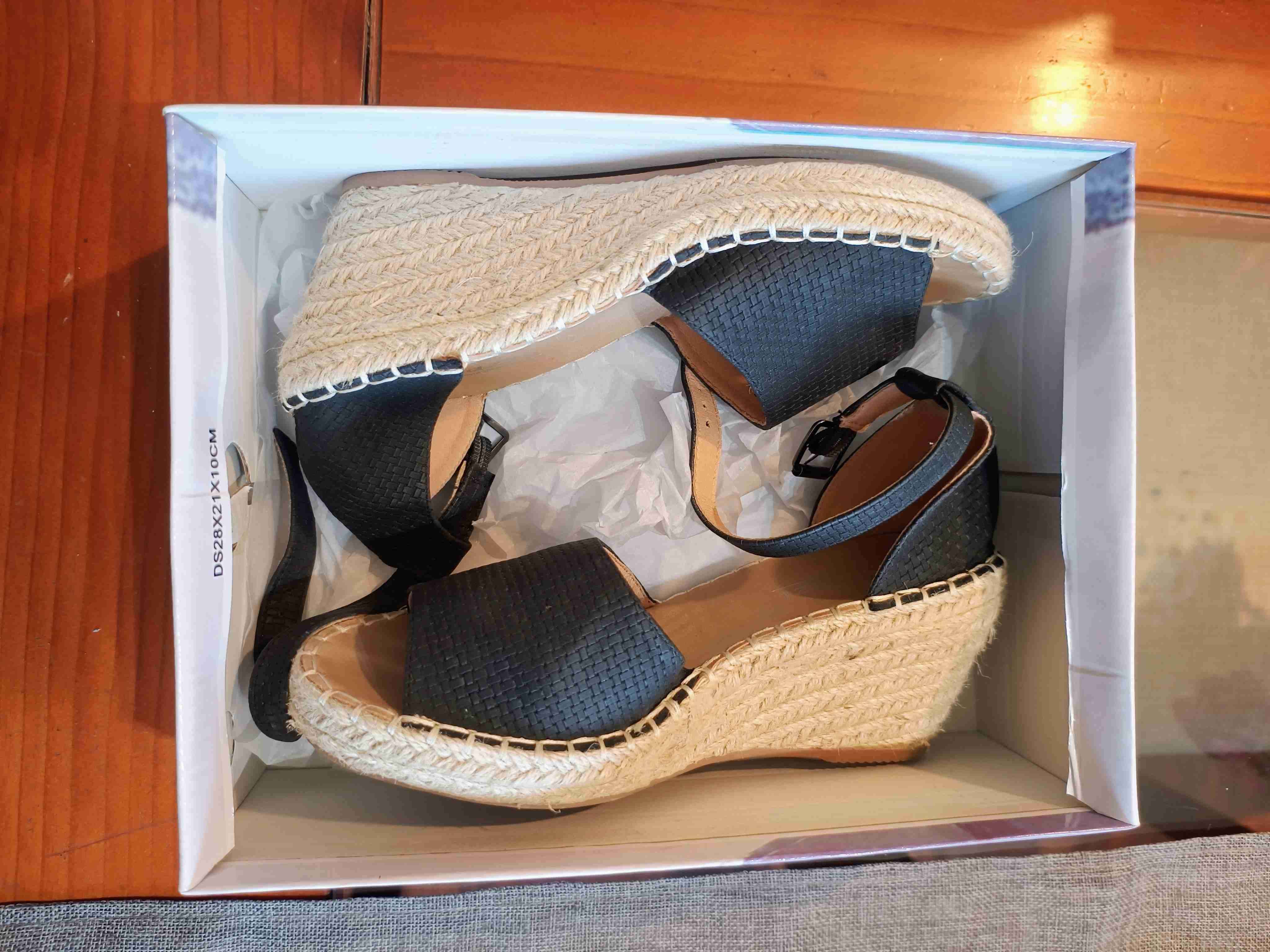 Sandalias de color negro con plataforma de yute. Estilo casual ideal para el verano. Buen estado general.