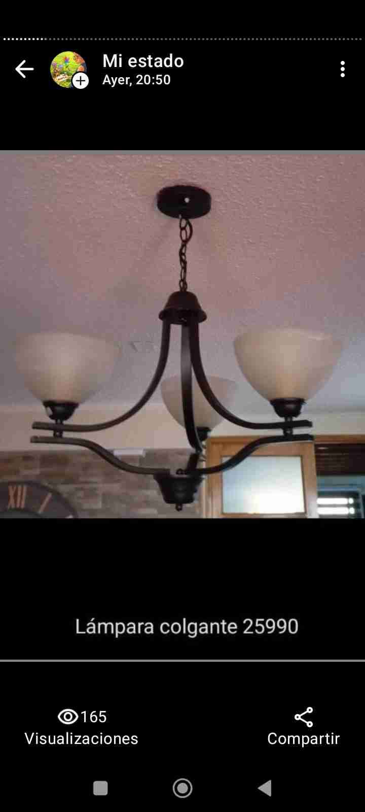 Elegante lámpara de techo en buen estado. Ideal para comedor o sala de estar.