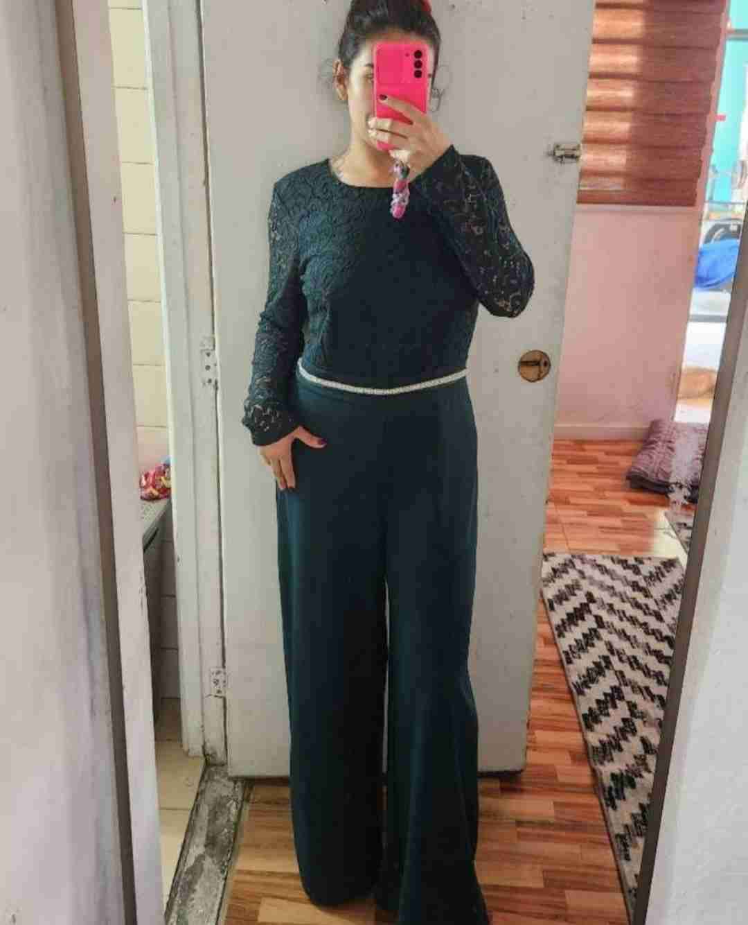 Enterito verde oscuro con encaje en la parte superior. Ideal para eventos formales. En buen estado casi nuevo, solo 1 uso. Talla L