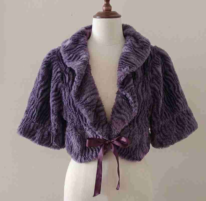 Elegante chaleco corto de peluche morado con lazo. Ideal para ocasiones especiales y noches frías. En buen estado.Talla S/M