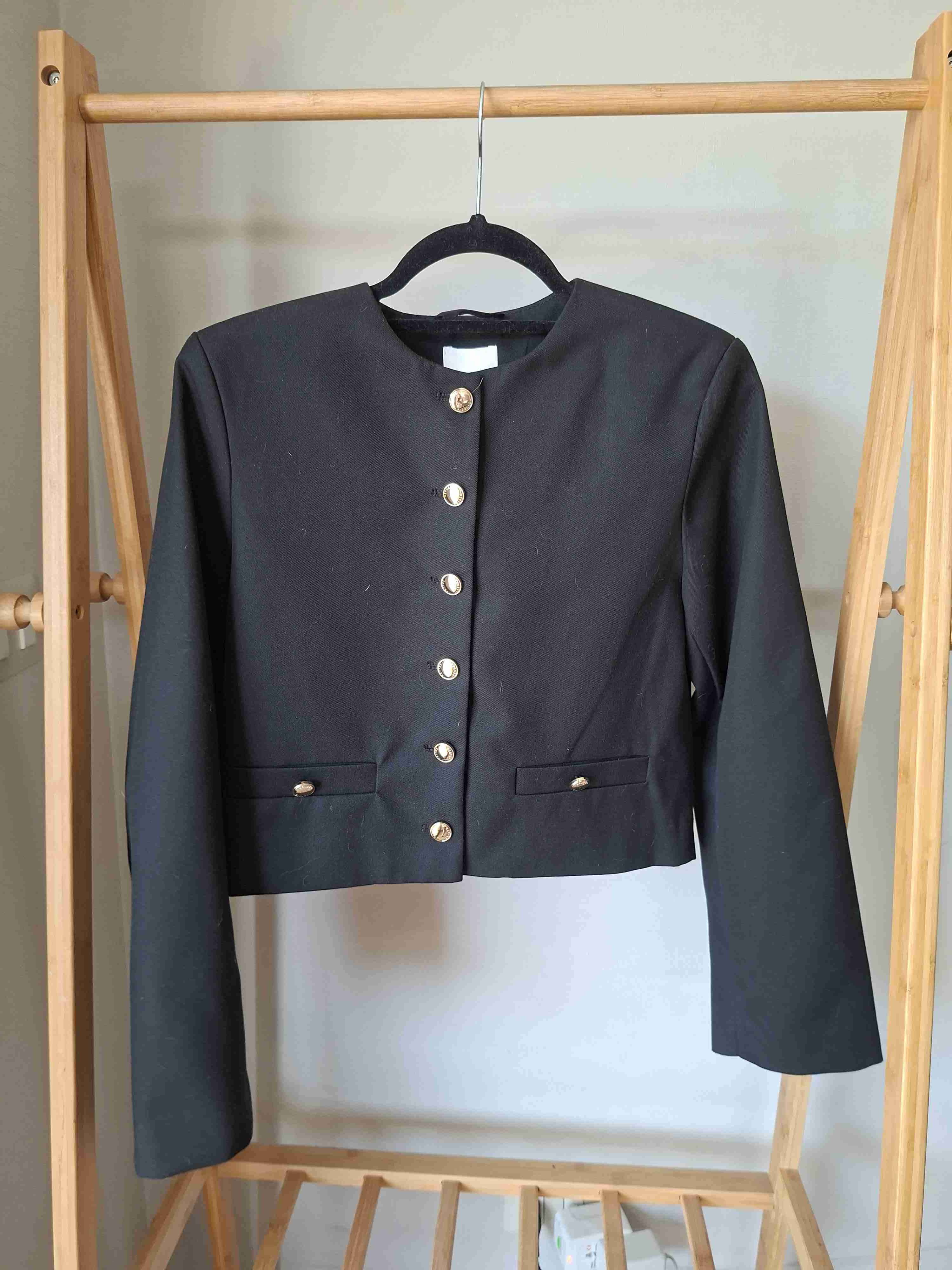 Blazer negro con botones plateados, estilo clásico y formal. Ideal para ocasiones especiales.