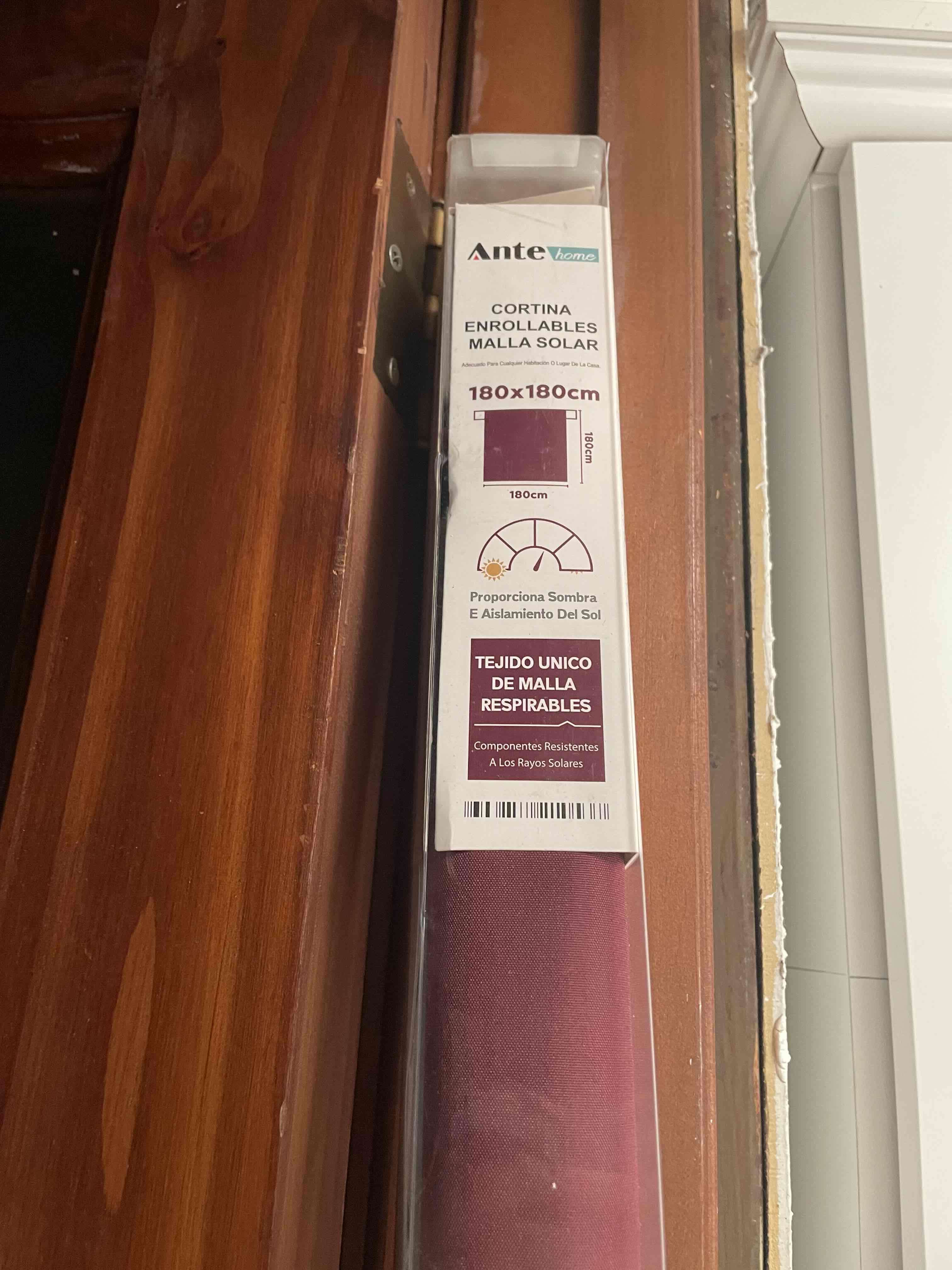 Cortina enrollable color vino tinto, ideal para bloquear el sol. Perfecta para ventanas grandes.
