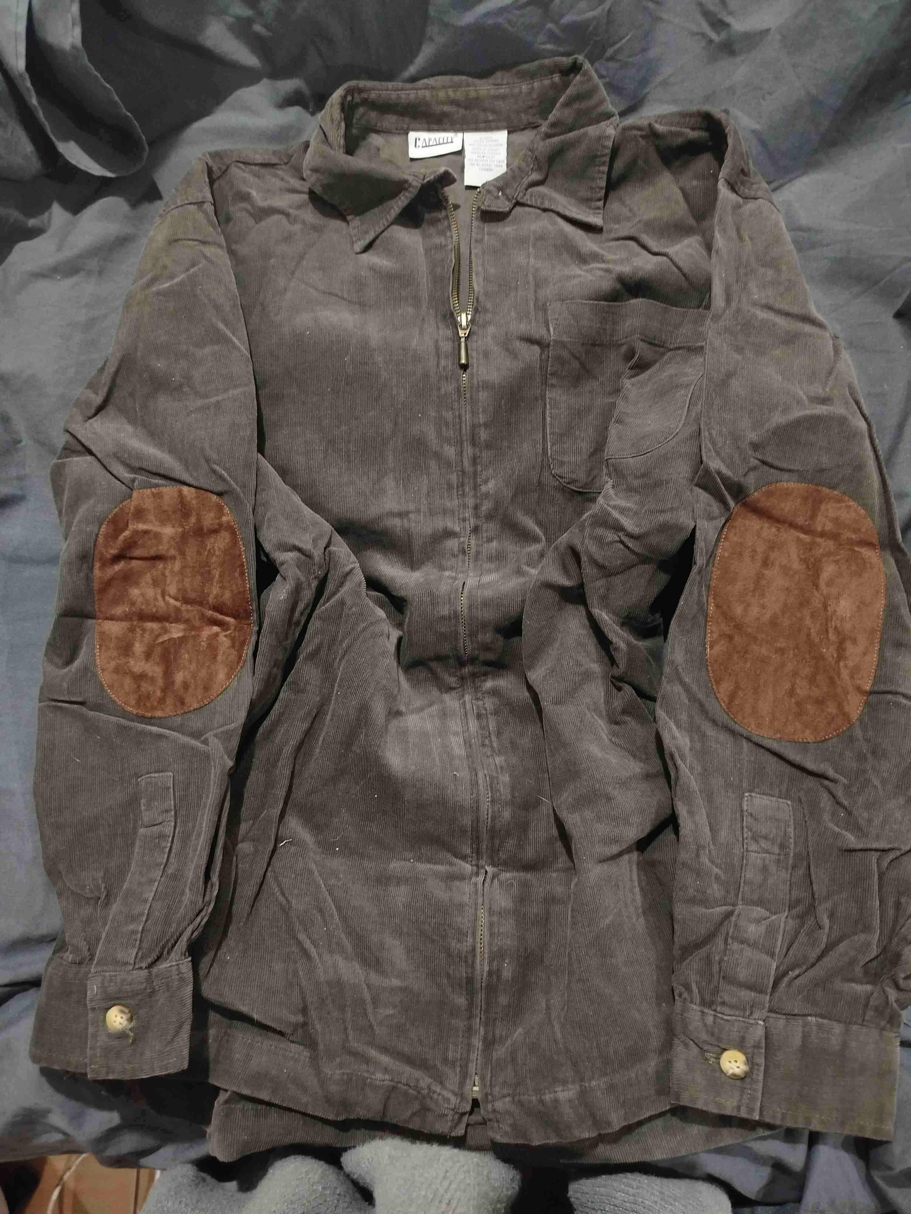 Chaqueta de pana verde con coderas a tono. Ideal para otoño e invierno. Buen estado general con detalles mínimos de uso. Es oversize XL, Pero es más una L