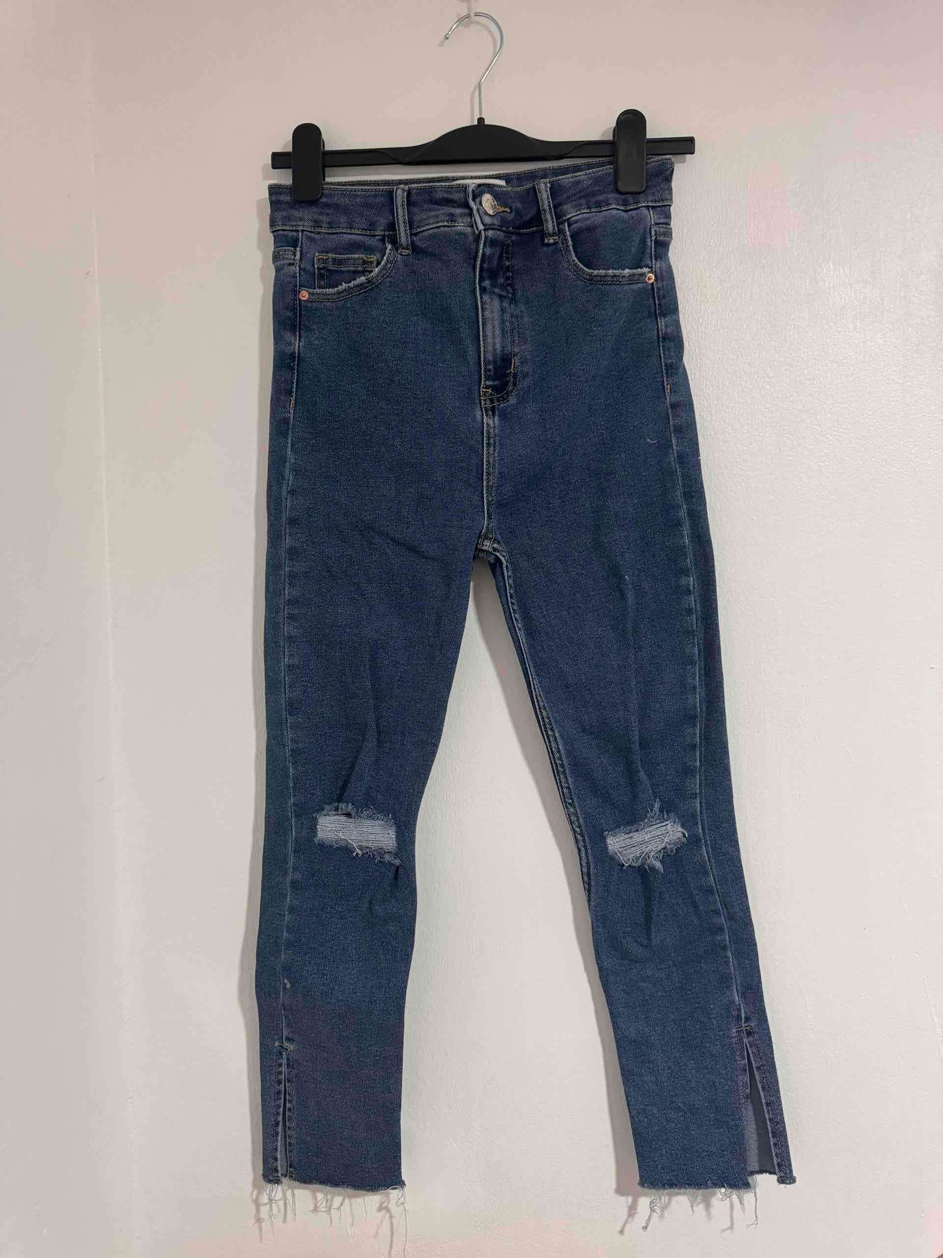 Jeans elasticado azul obscuro con detalles rasgados en las rodillas. Modelo tío alto. Perfectos para un look casual.