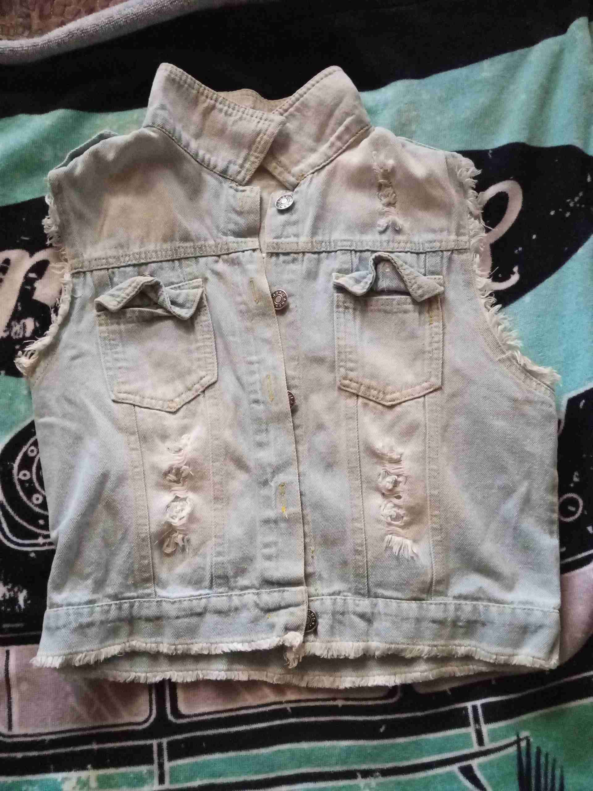 Chaleco de mezclilla para un look casual y desenfadado. Presenta desgaste intencional, ideal para uso diario.