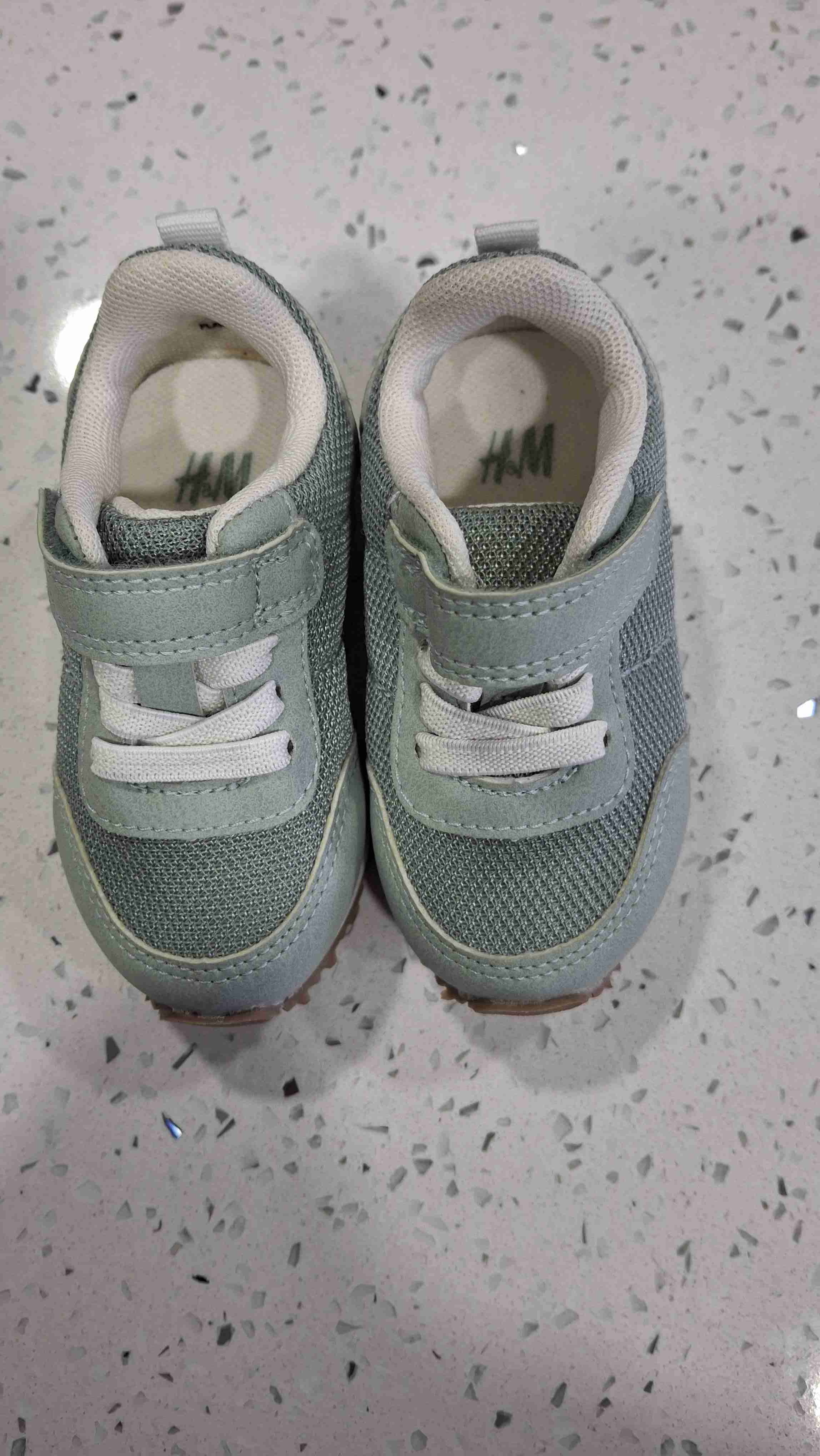 Zapatillas para bebé de color verde suave, ideales para el uso diario. En buen estado general con cierre de velcro. Talla 18-19