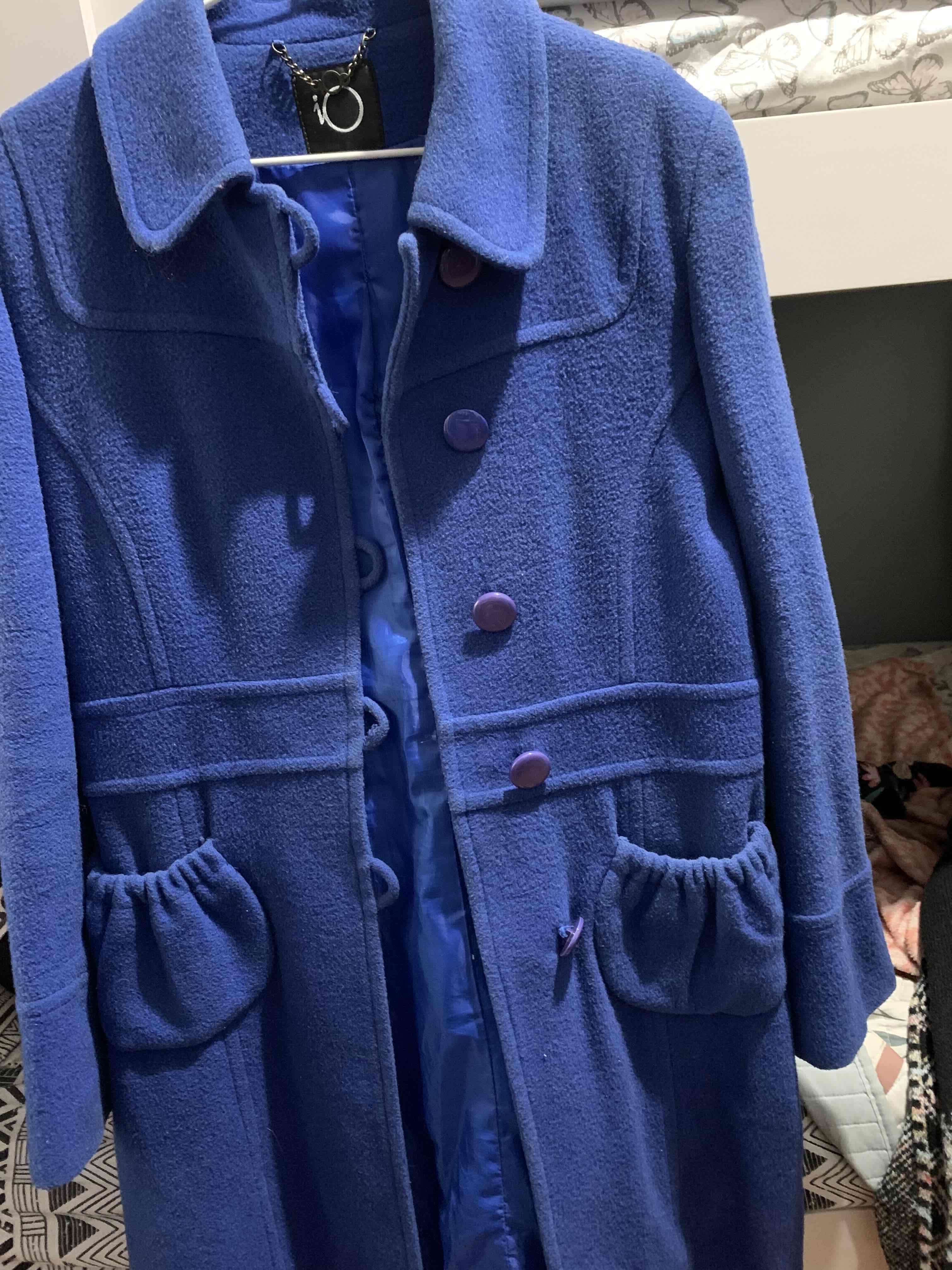 Elegante abrigo azul, perfecto para el invierno. Buen estado con detalles clásicos.