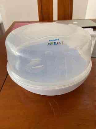 Esterilizador compacto para microondas, ideal para biberones y accesorios. Buen estado, fácil de usar. Incluye una mamadera