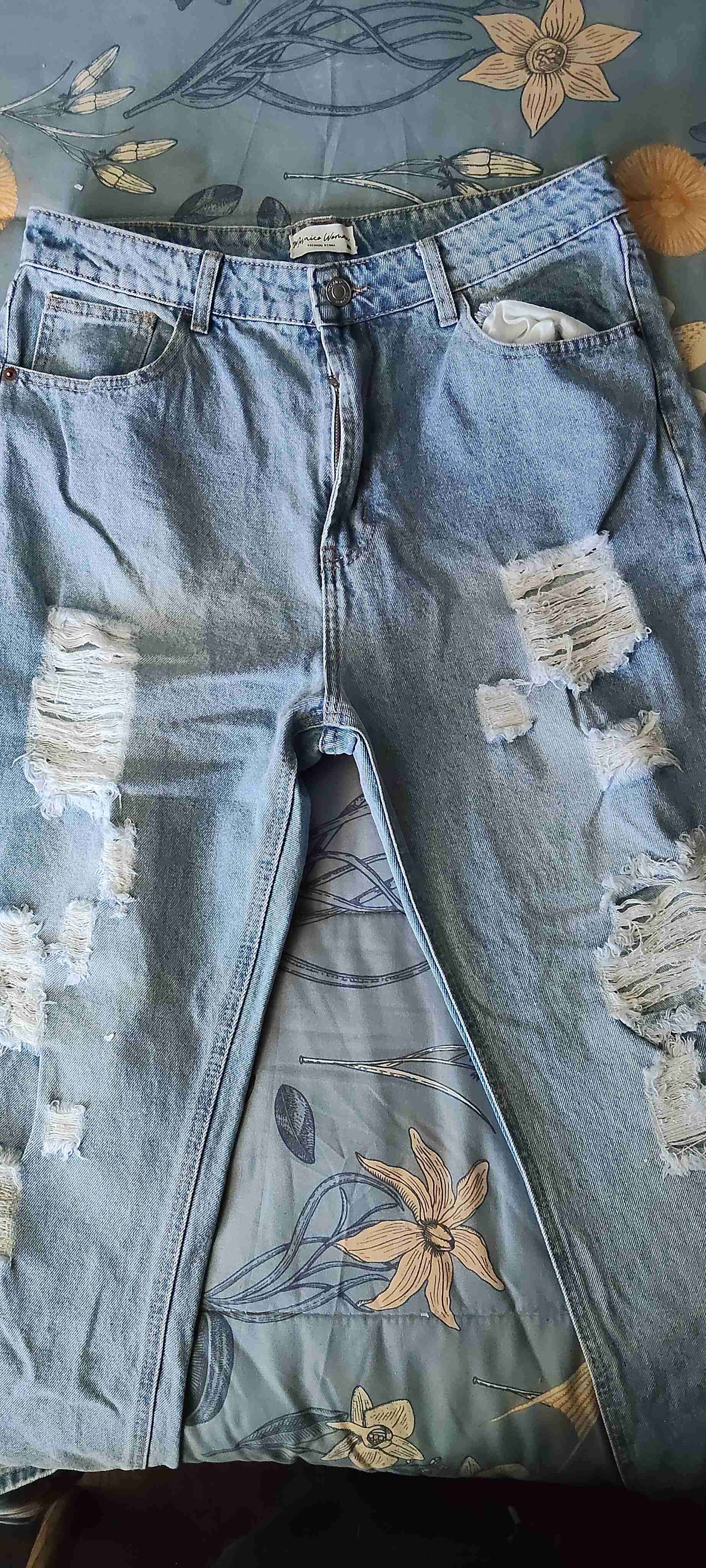 Jeans modernos azules con diseño rasgado. En buen estado y perfectos para un look casual y relajado. Por wsp