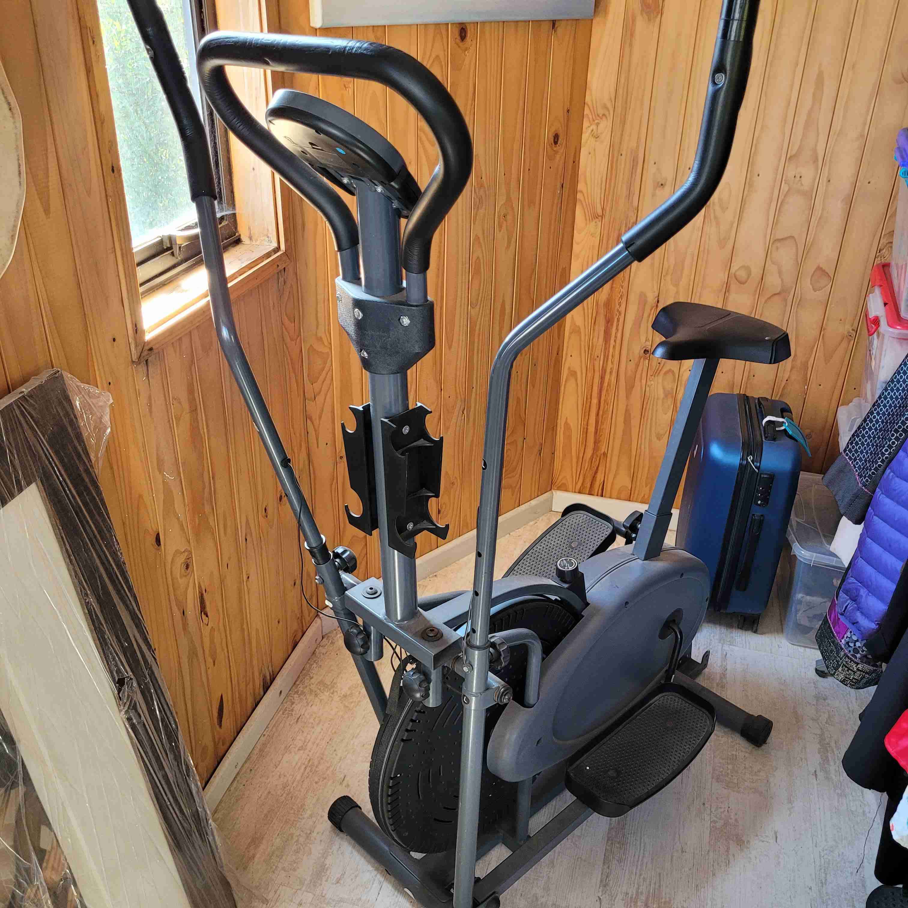 Elíptica en buen estado, ideal para hacer ejercicio en casa. Algunos signos de uso, pero funcionando correctamente.