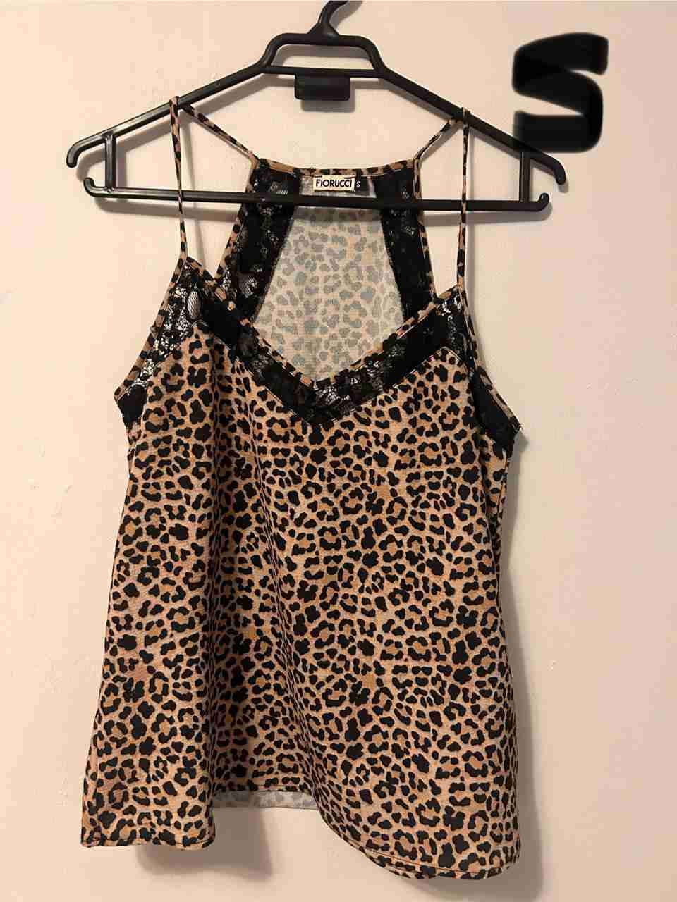 Top de tirantes estampado leopardo con detalle de encaje. Talla S