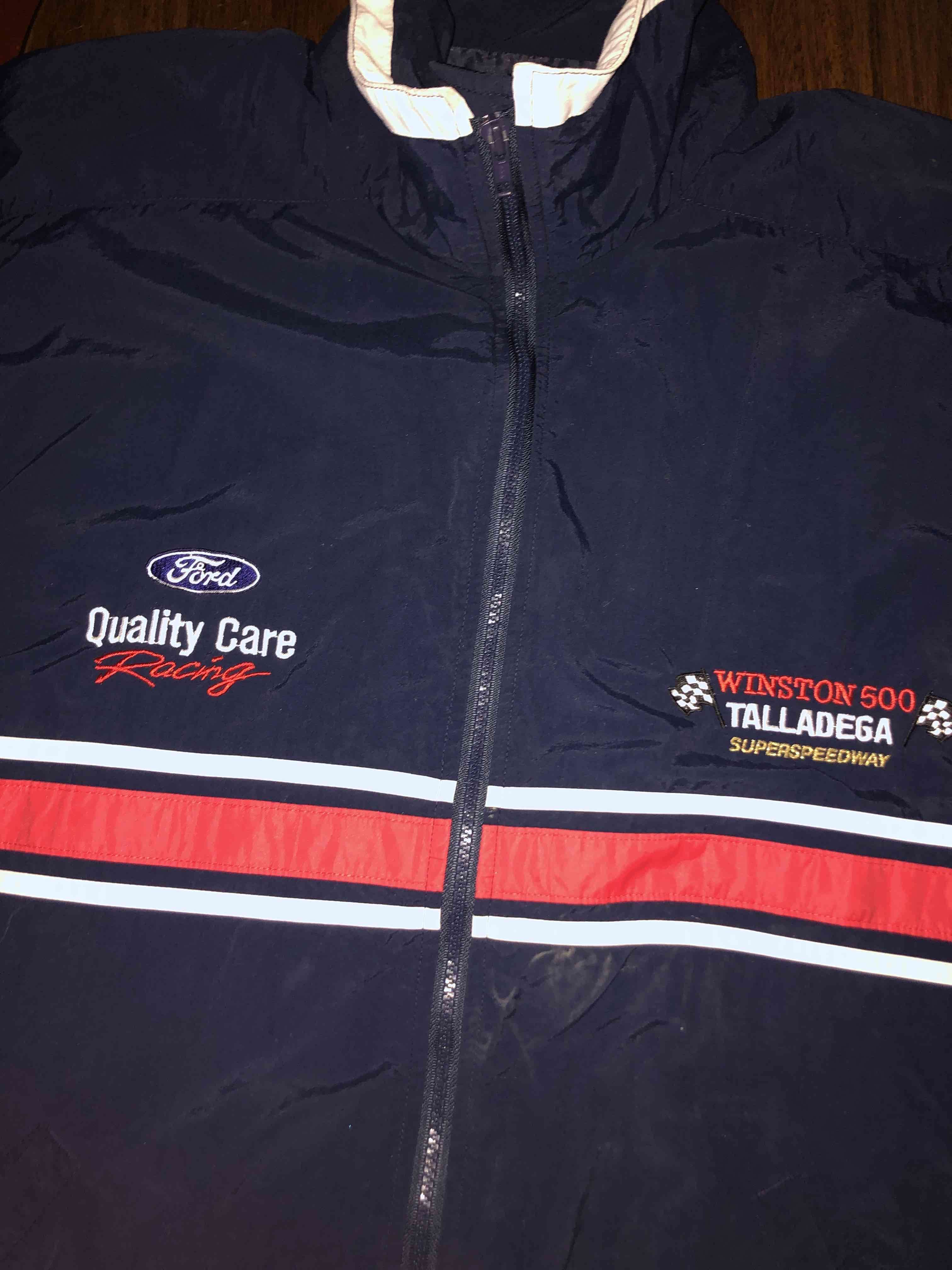 Chaqueta de Ford Racing en azul con detalles rojos y blancos. Perfecta para fanáticos de las carreras. En buen estado.