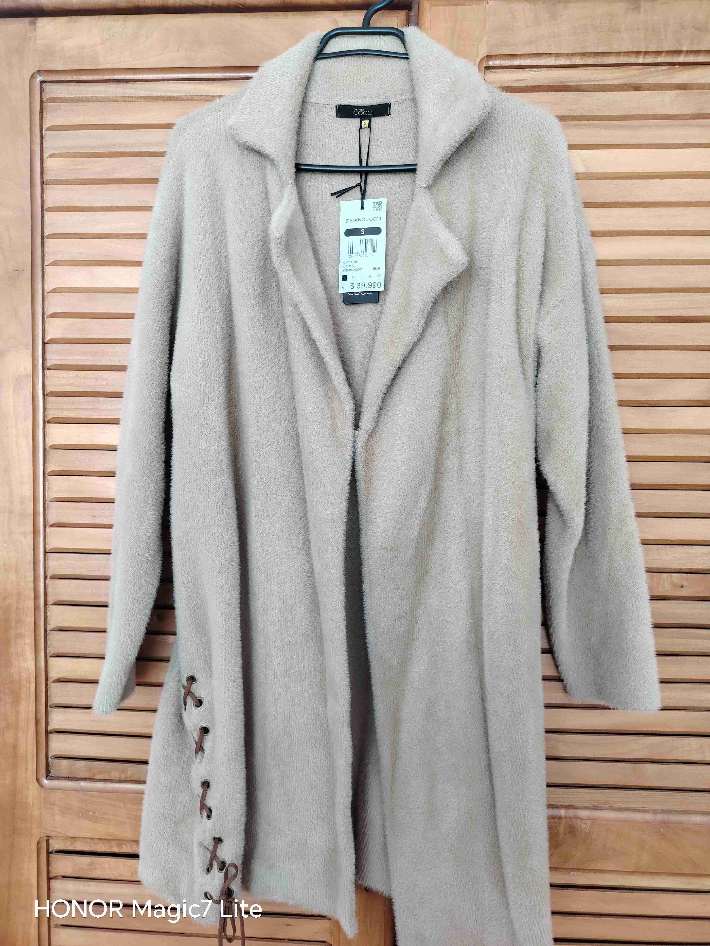 Abrigo moderno y elegante en tono beige, ideal para días fríos. Nuevo con etiqueta.
