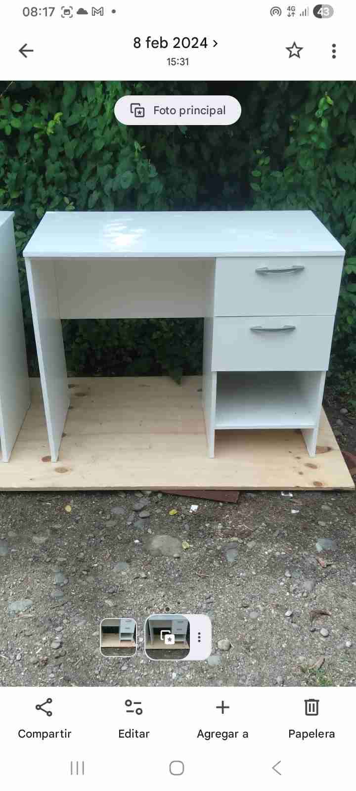 Moderno escritorio blanco, perfecto para oficina o estudio en casa. Incluye dos cajones amplios para almacenamiento. Estado general bueno.