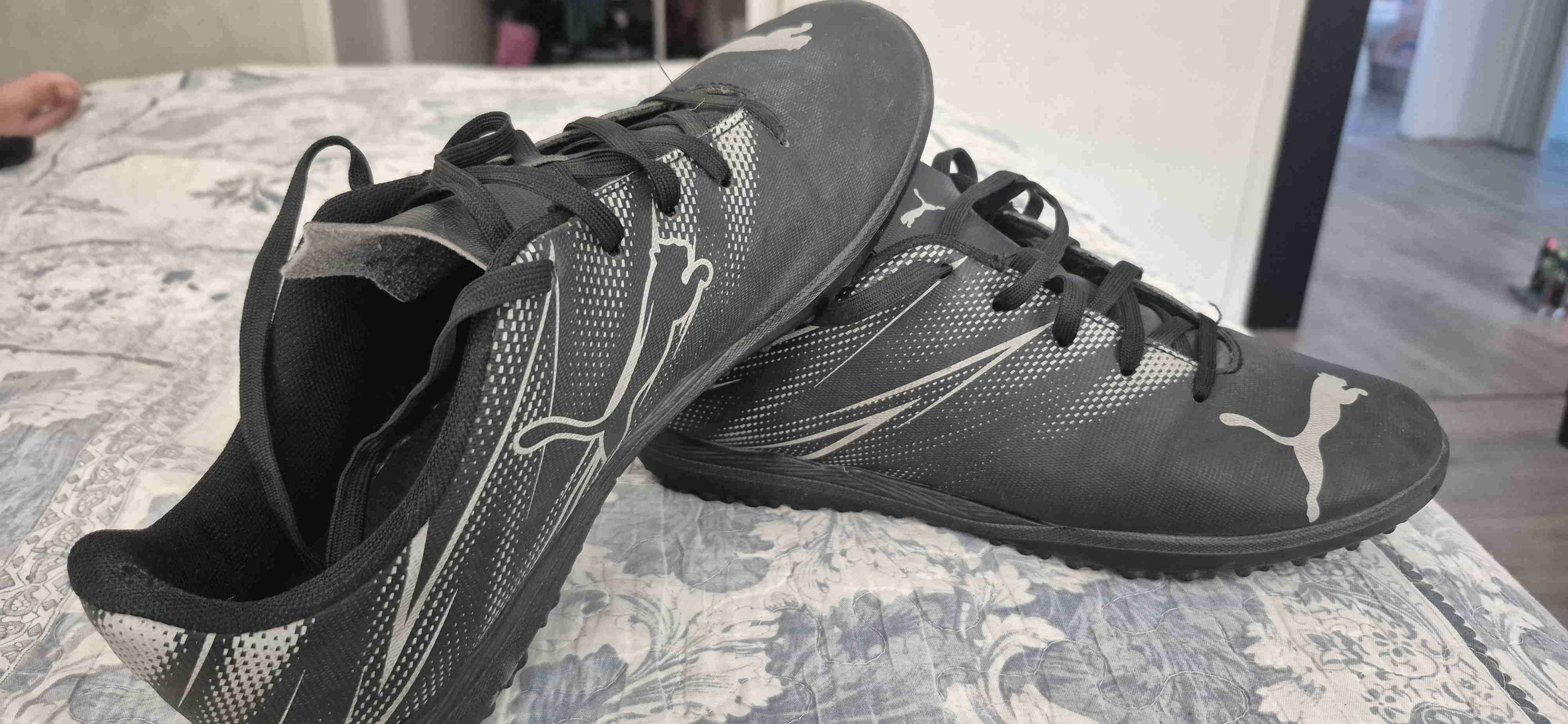 Zapatillas negras deportivas de la marca Puma, en buen estado. Ideales para practicar fútbol o deportes al aire libre.