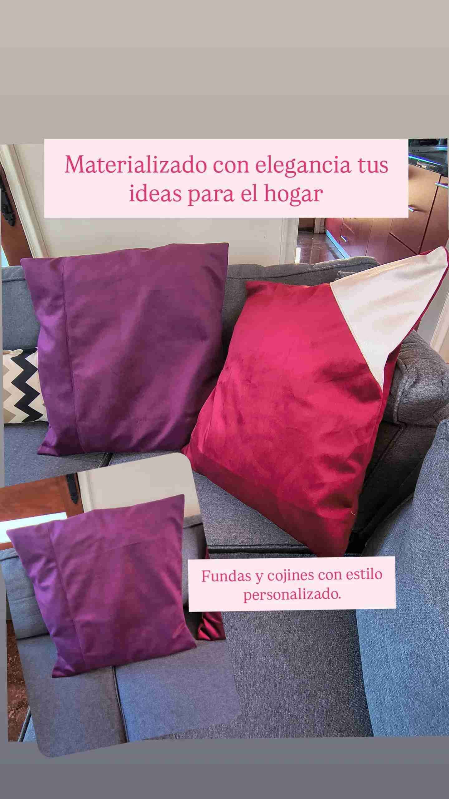Elegantes fundas para cojines en tonos morado y rojo, ideales para decorar tu hogar. Buen estado con estilo personalizado. Pack de 2 fundas 50x60