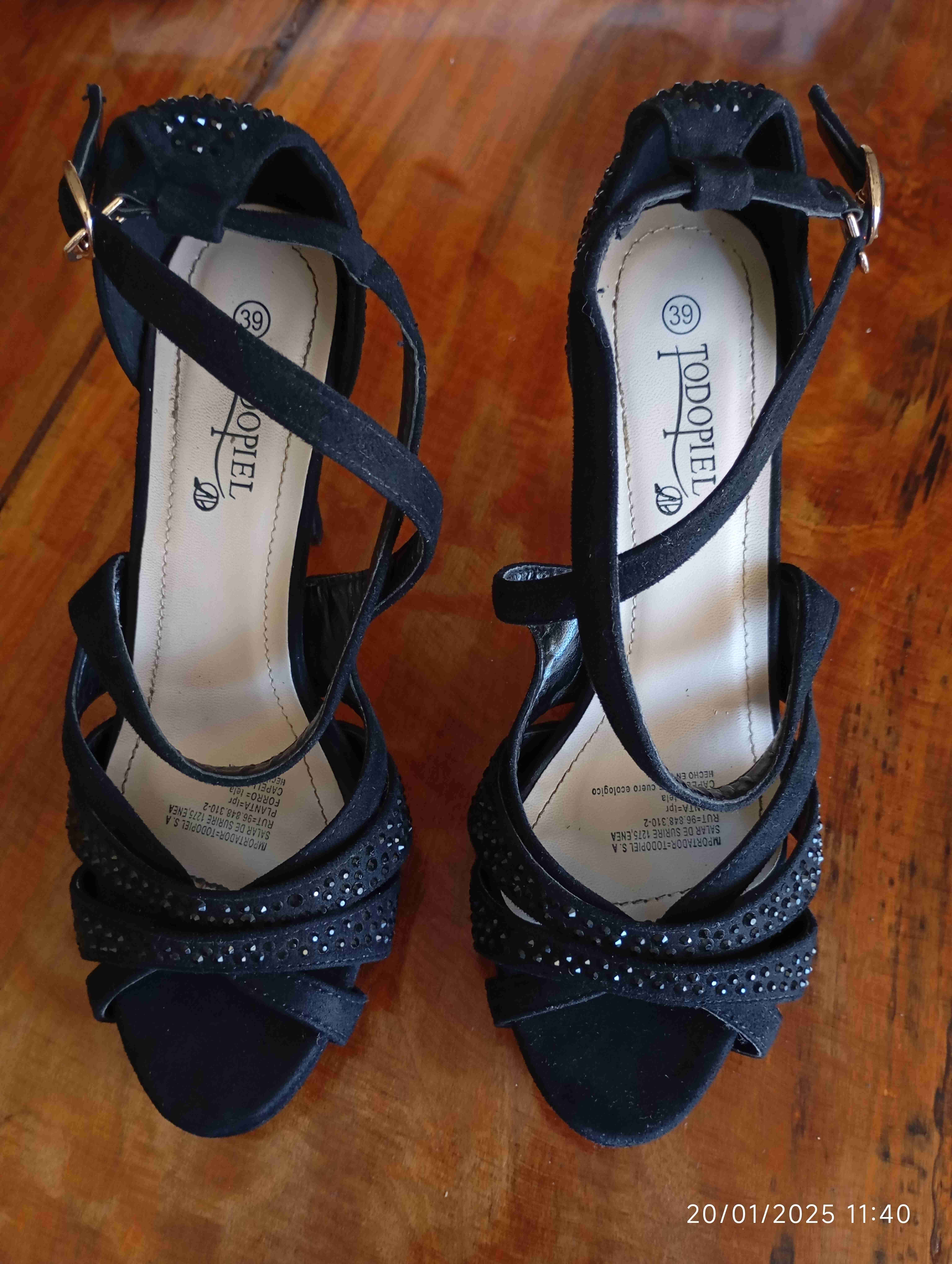 Elegantes sandalias negras con detalles brillantes. Perfectas para una ocasión especial. Prácticamente nuevas.