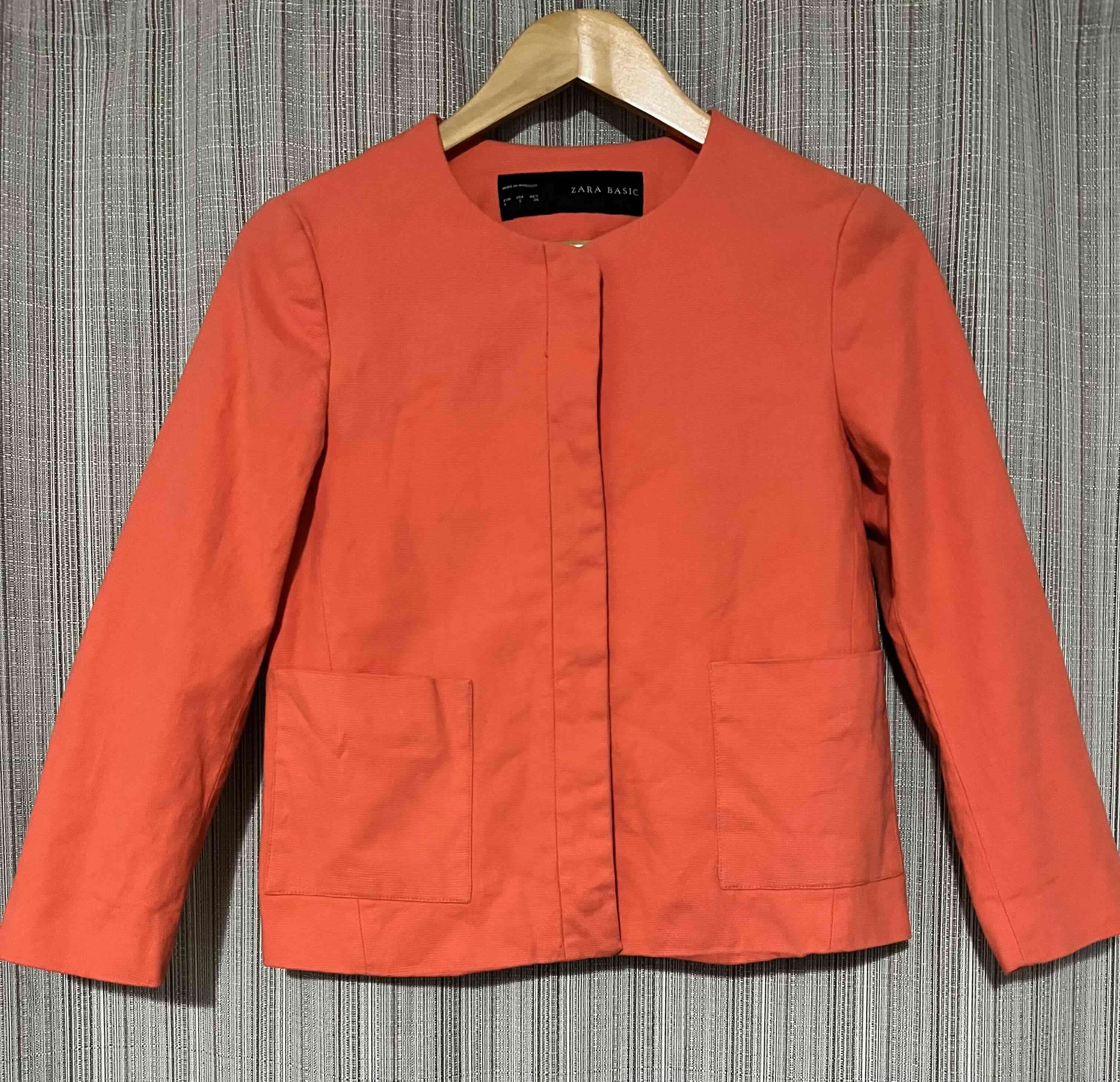 Chaqueta elegante de color naranja, ideal para la temporada entretiempo. En buen estado general, con leves signos de uso.