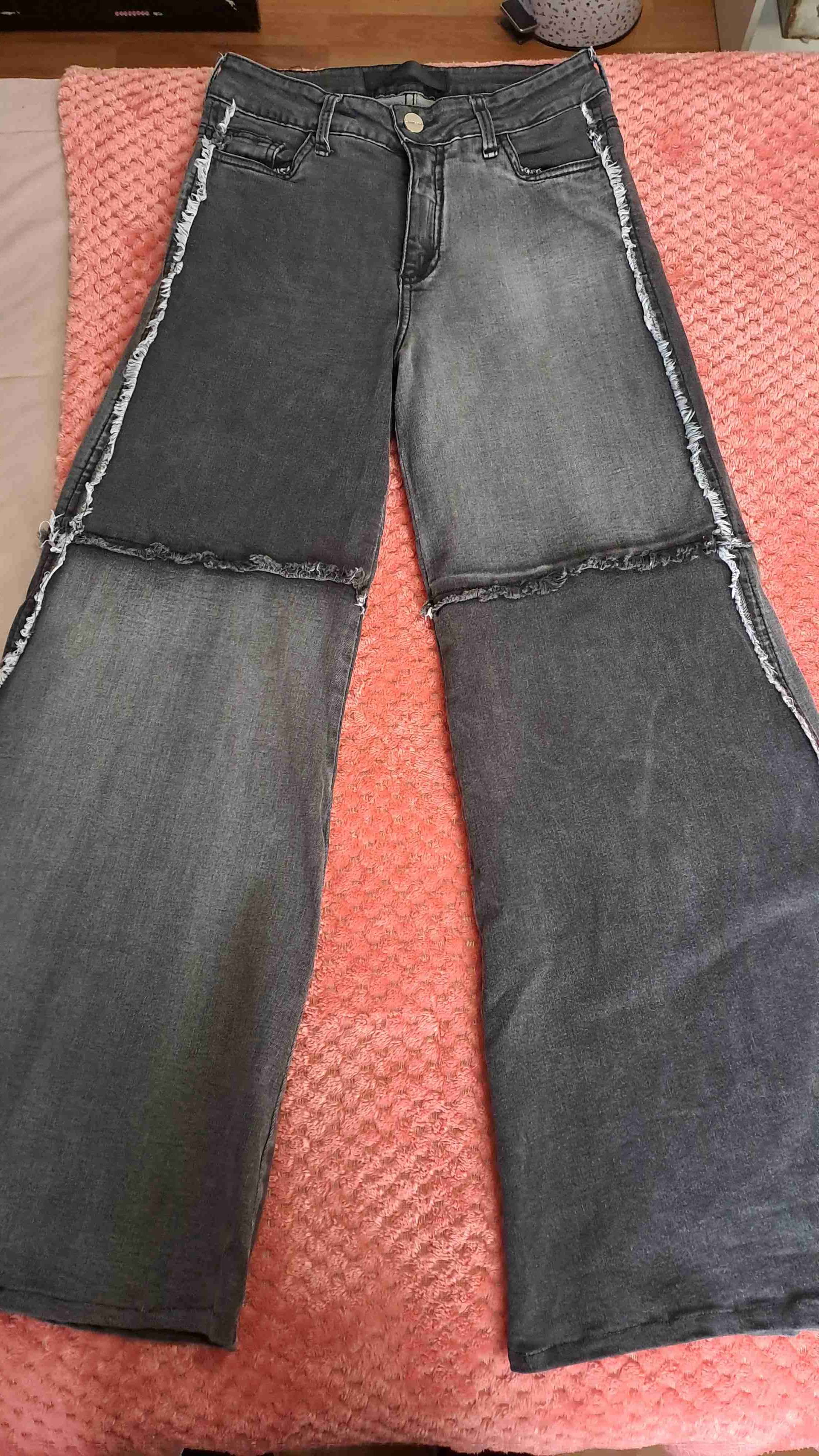 Jeans grises con diseño desgastado y detalles deshilachados a los lados. Ideales para un look casual. En buen estado casi sin uso.
