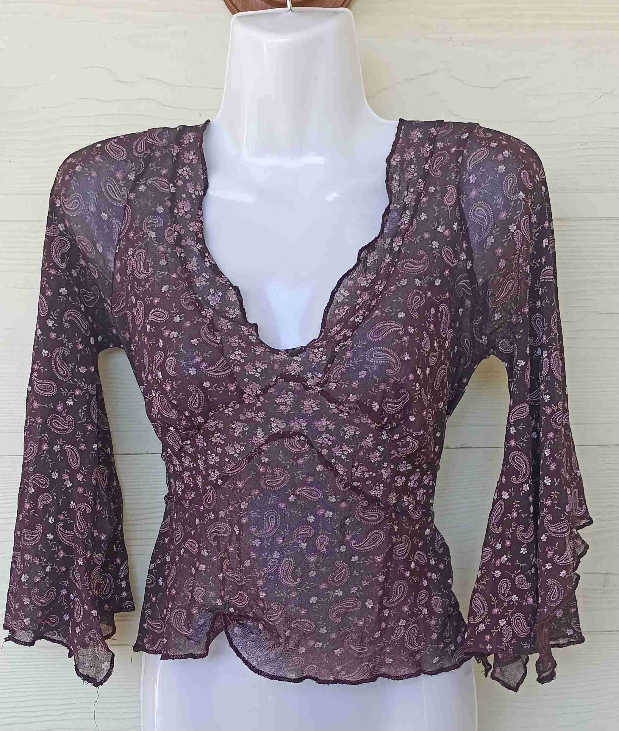 Blusa semitransparente con diseño floral y estilo bohemio. Perfecta para un look casual o una salida con amigos.