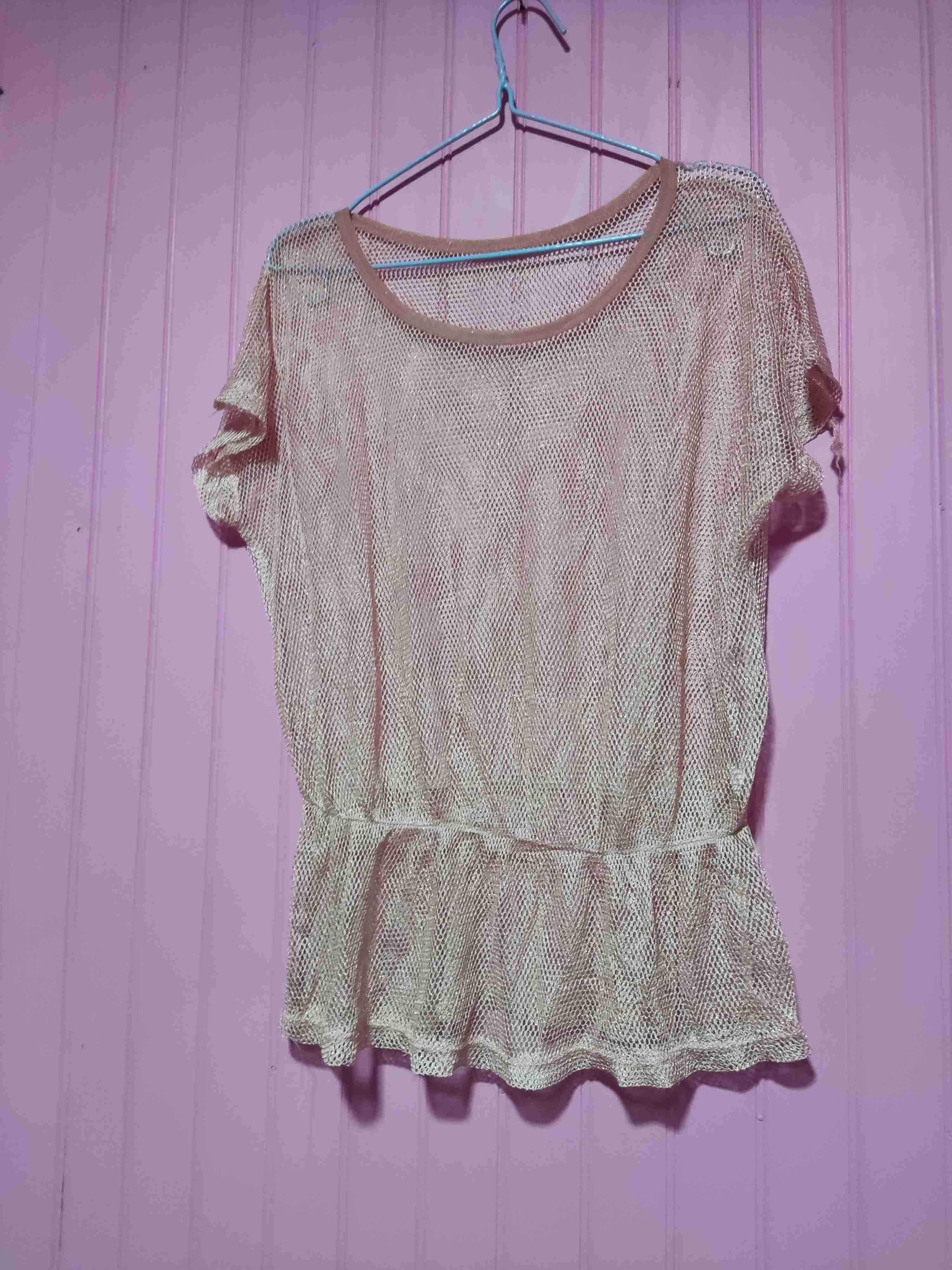 Blusa de malla en color beige, ideal para un look veraniego. En buen estado con detalles de uso mínimos.