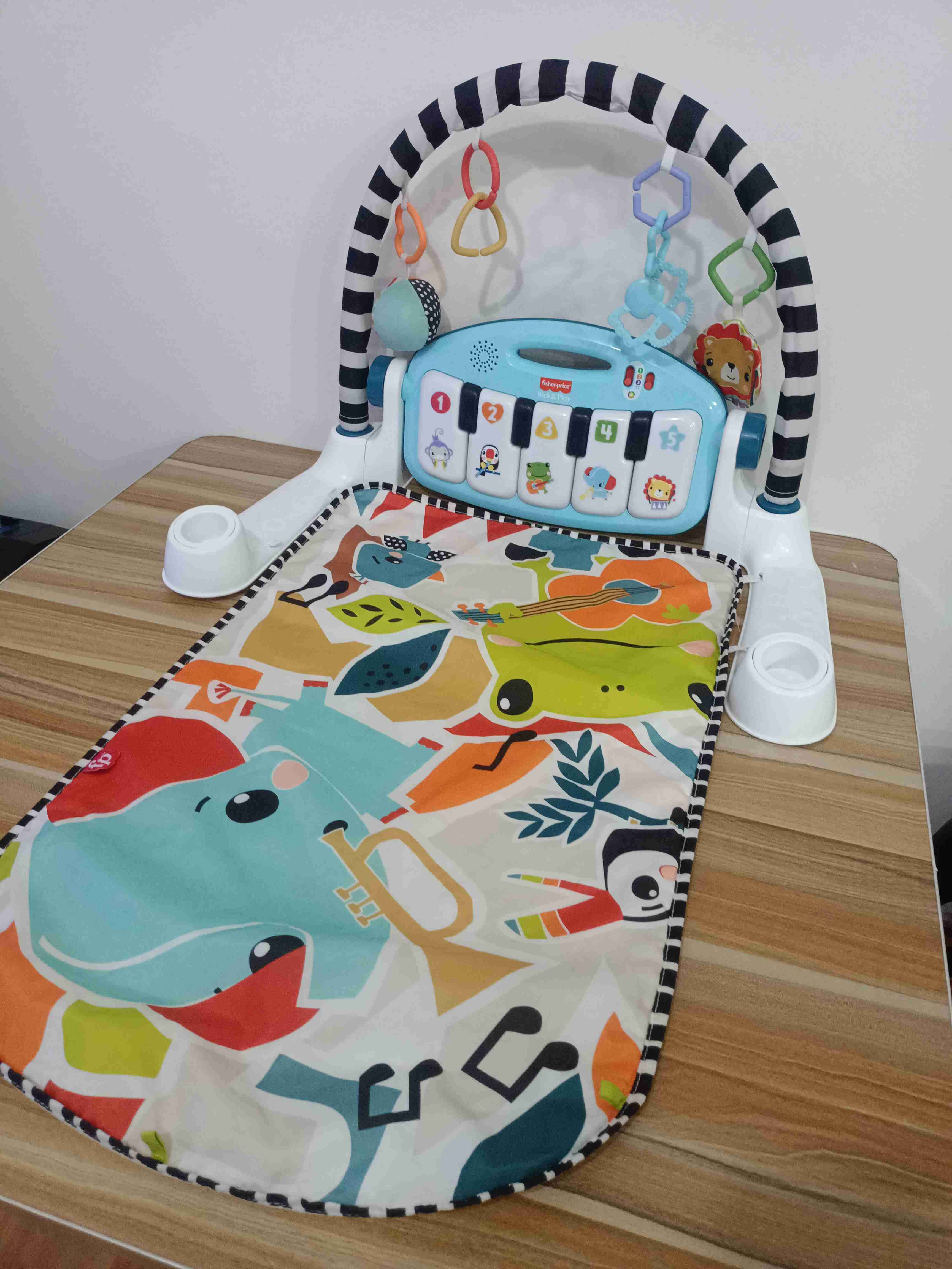 Gimnasio de juego para bebés con piano musical y colores vibrantes. Ideal para estimular los sentidos y el desarrollo motor. En buen estado, ideal para bebes en crecimiento.