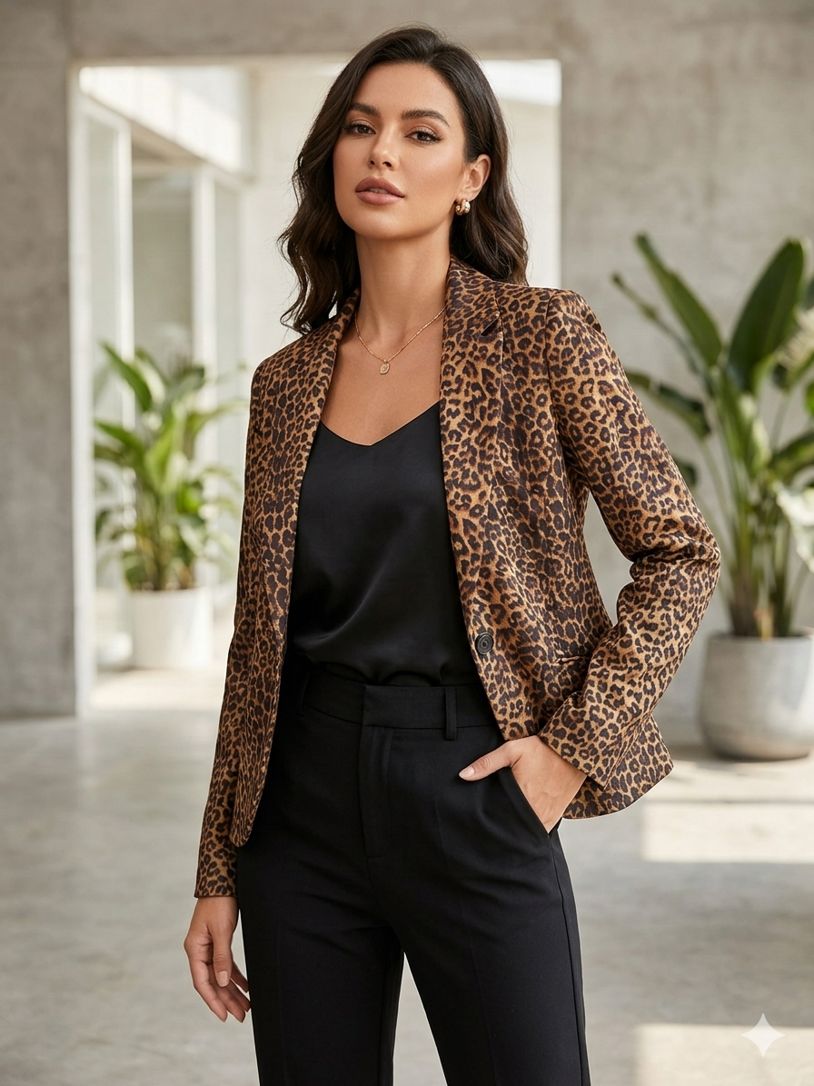 Blazer elegante con estampado de leopardo. Perfecto para ocasiones formales. En buen estado.