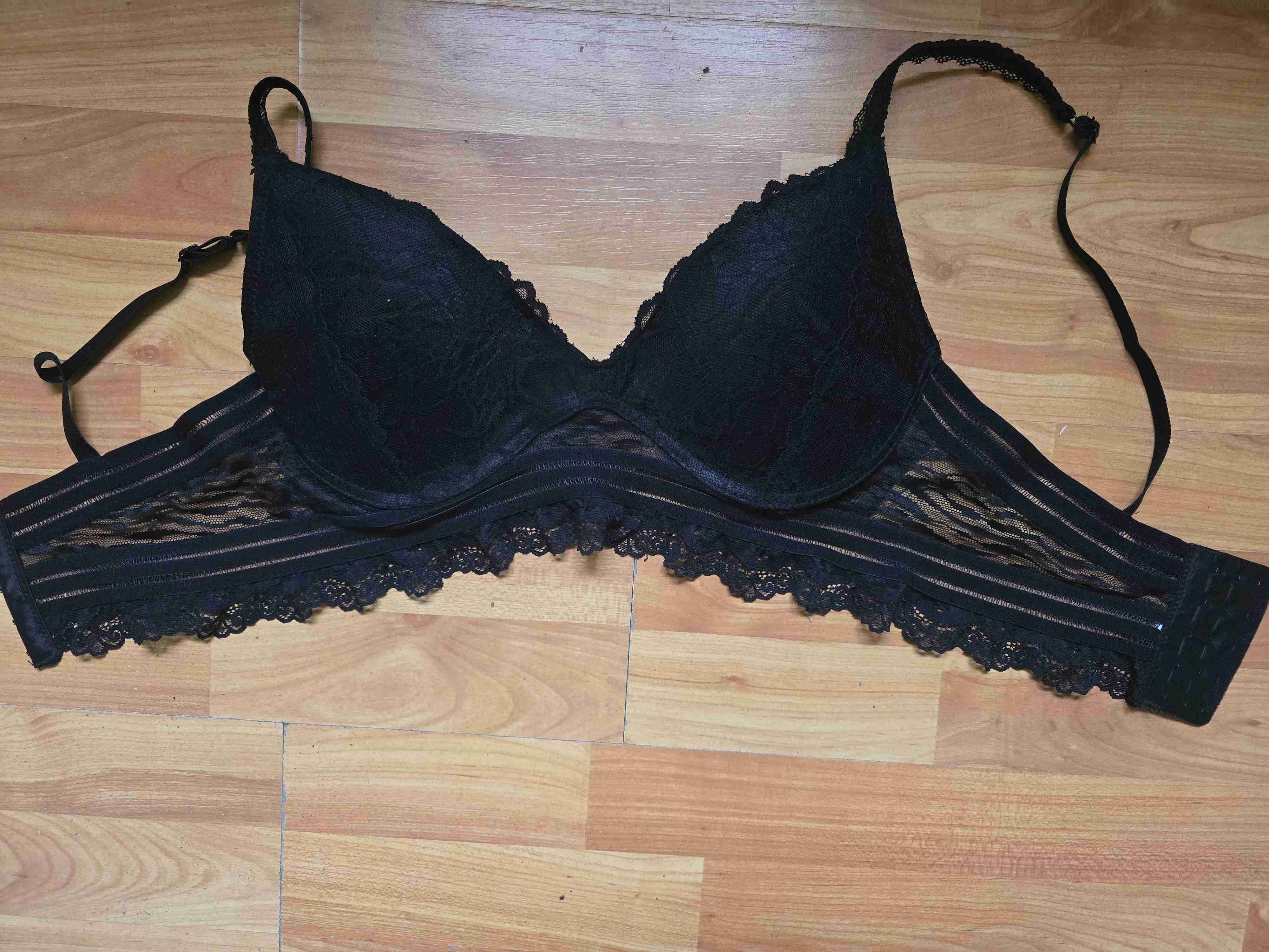Sostén elegante de encaje negro, ideal para cualquier ocasión. Está en buenas condiciones con detalles delicados en diseño. TALLA 36B