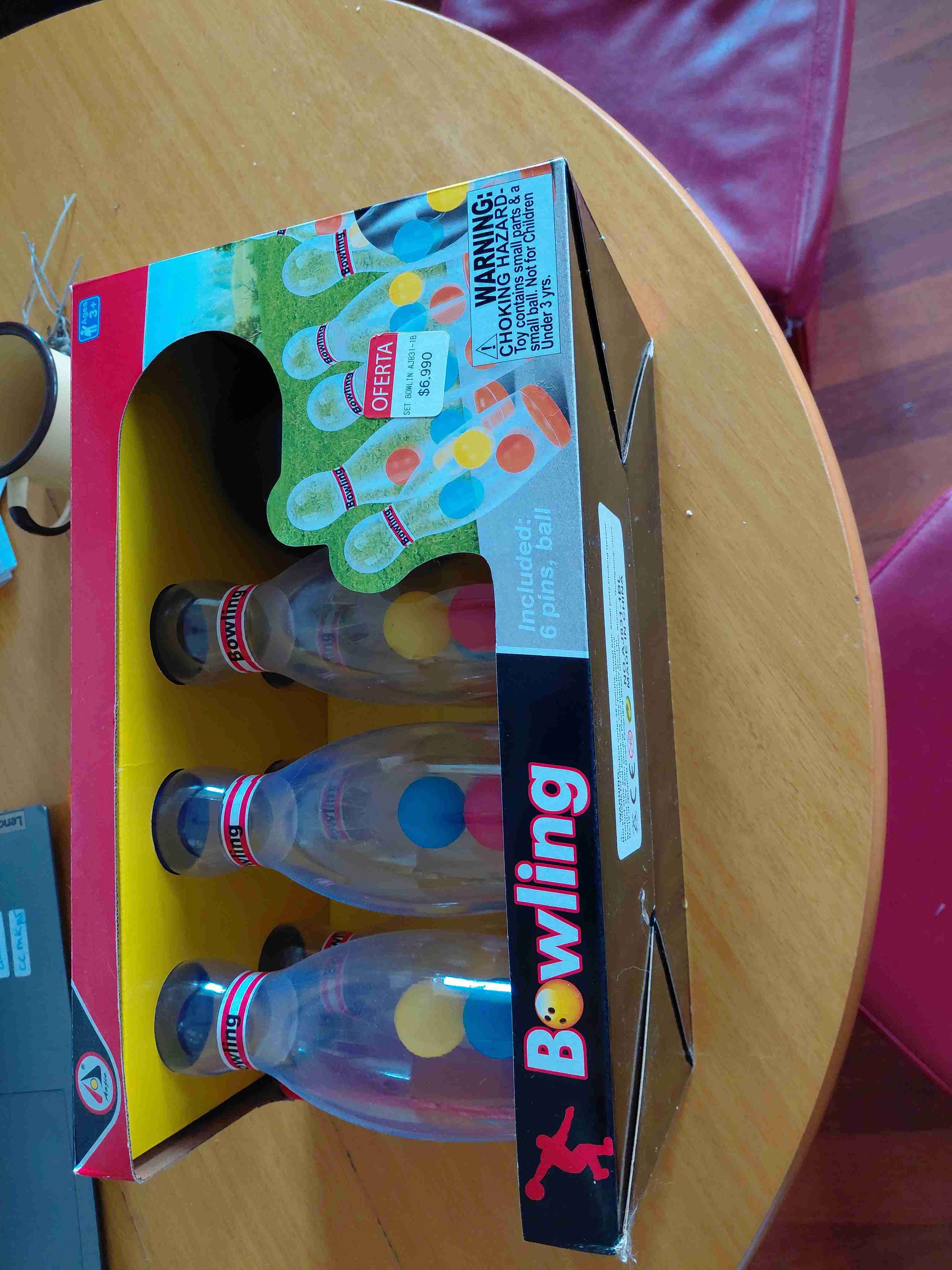 Set de bolos para niños con 6 bolos y bola. Ideal para diversión en interiores. Nuevo en caja.