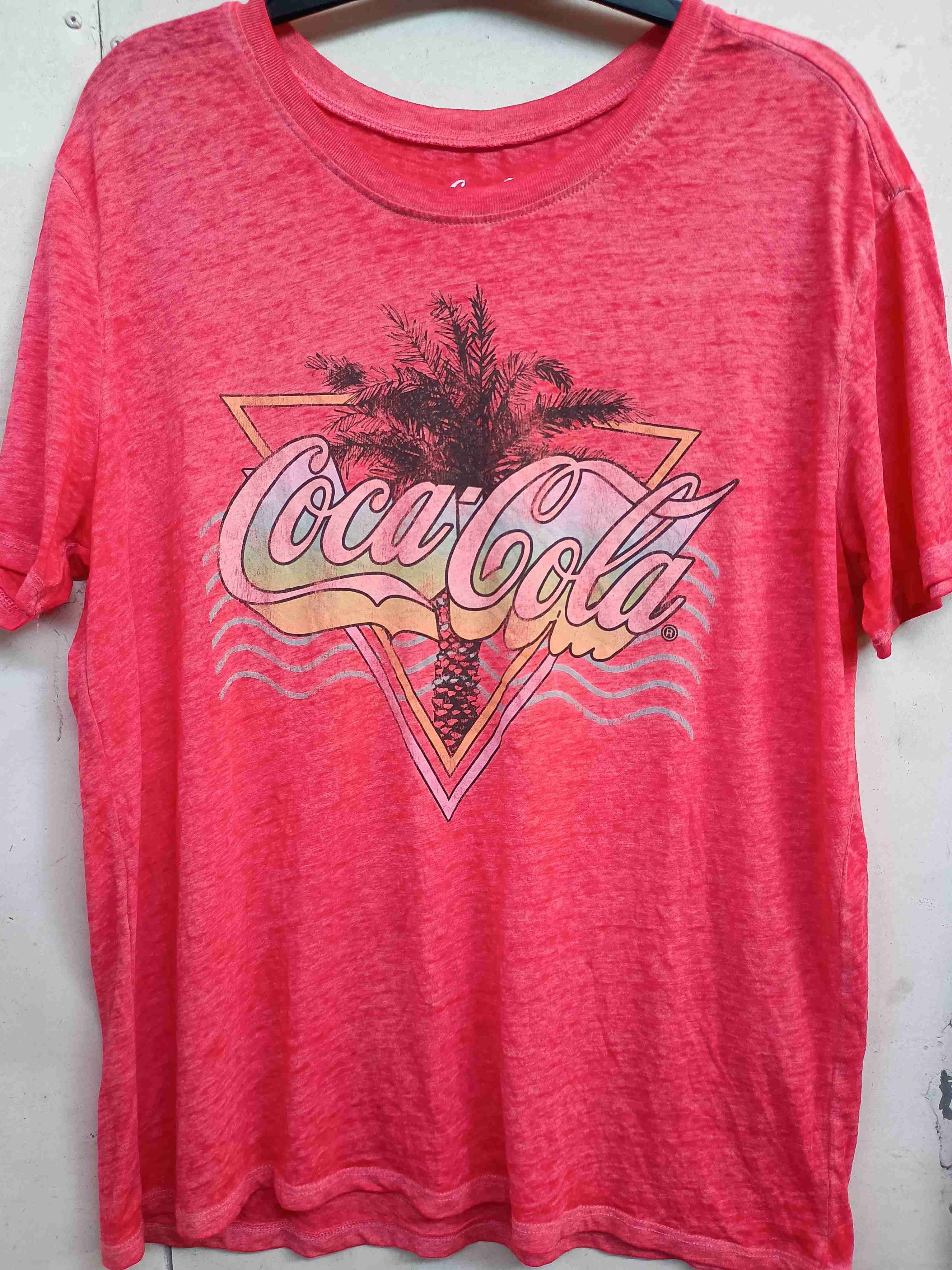 Polera roja con diseño de palmera y logo Coca-Cola. Ideal para días casuales.