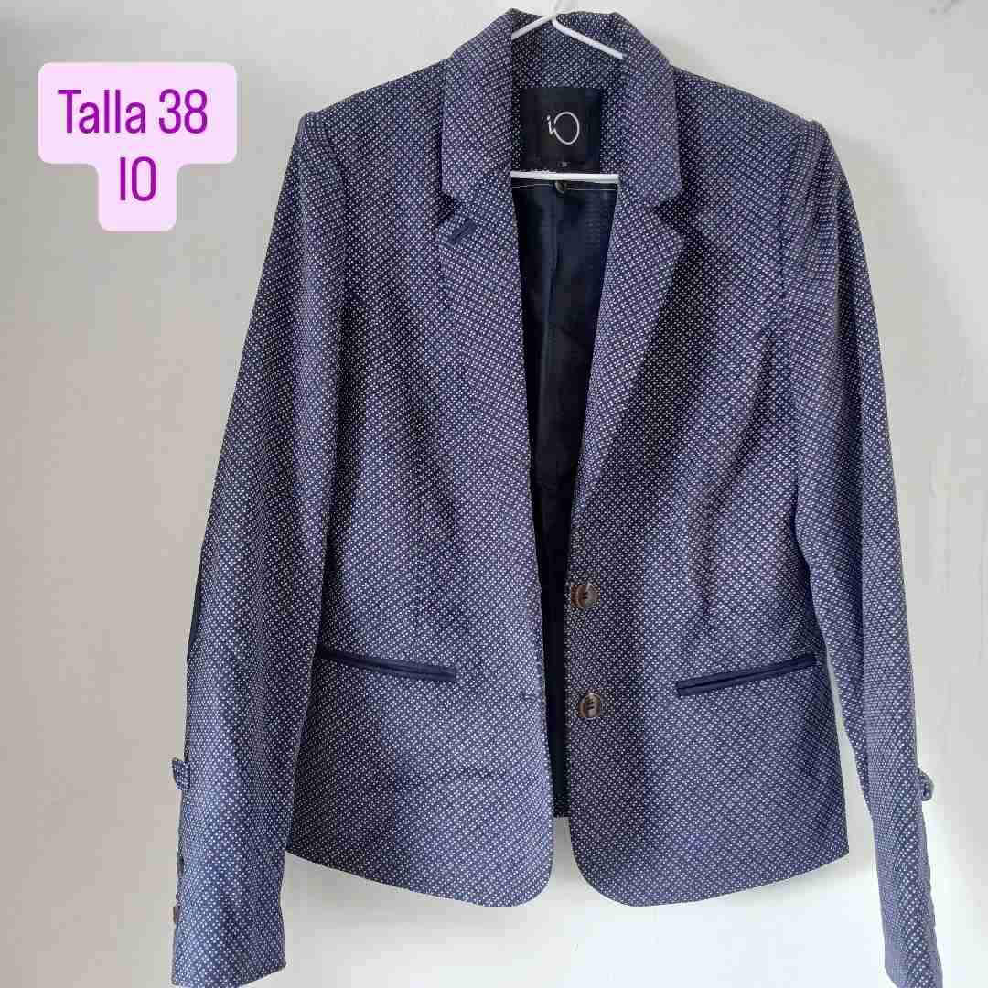 Elegante blazer azul con un sutil patrón geométrico. Ideal para ocasiones formales o de oficina. En buen estado.