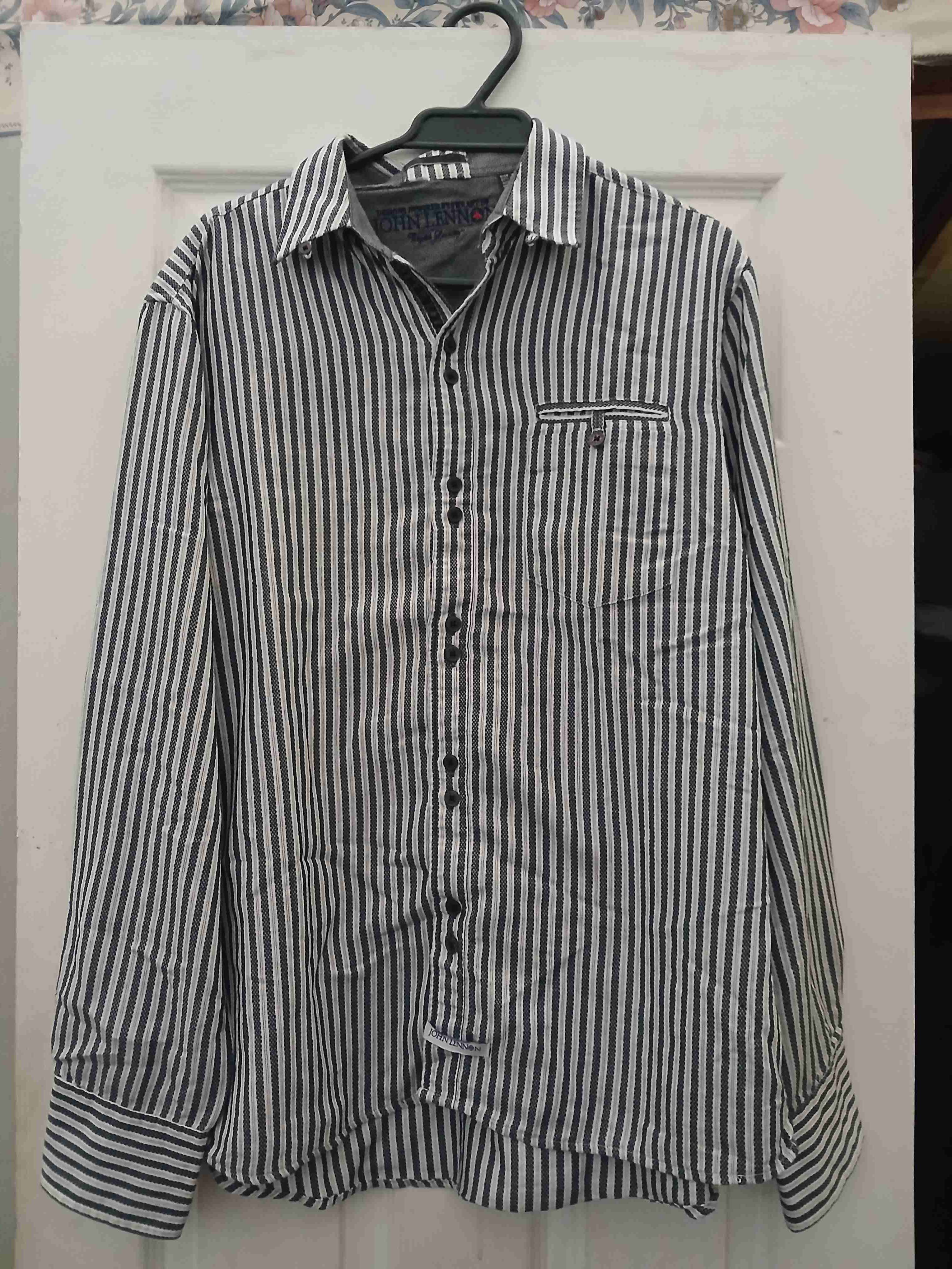 Camisa john lennon de rayas blanco y negro, perfecta para un look casual. En buen estado .