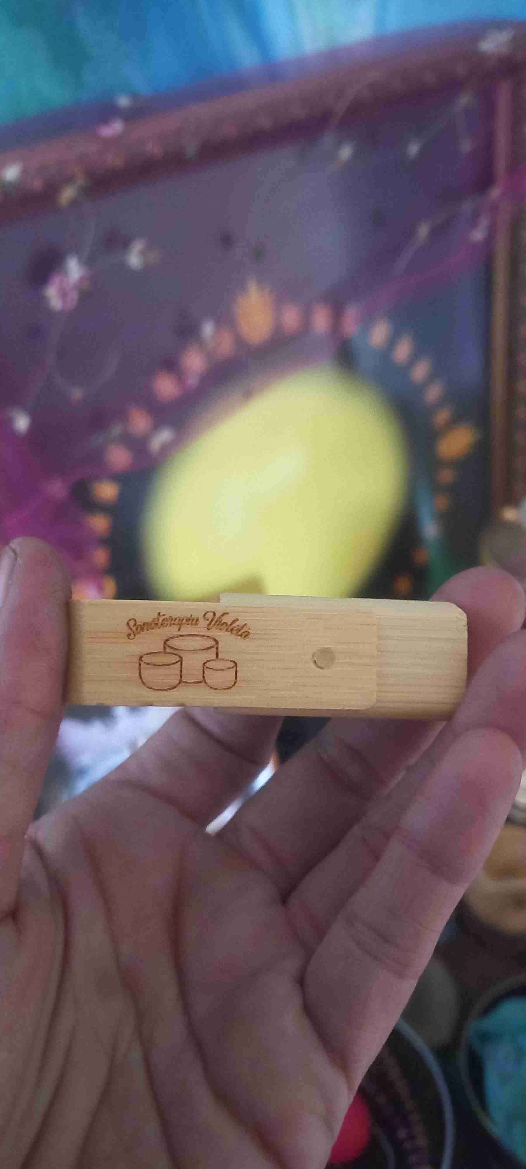 Tercer Disco de SonoTerapia Violeta Formato Dobly Atmos Memoria USB de bambú con grabado artesanal.