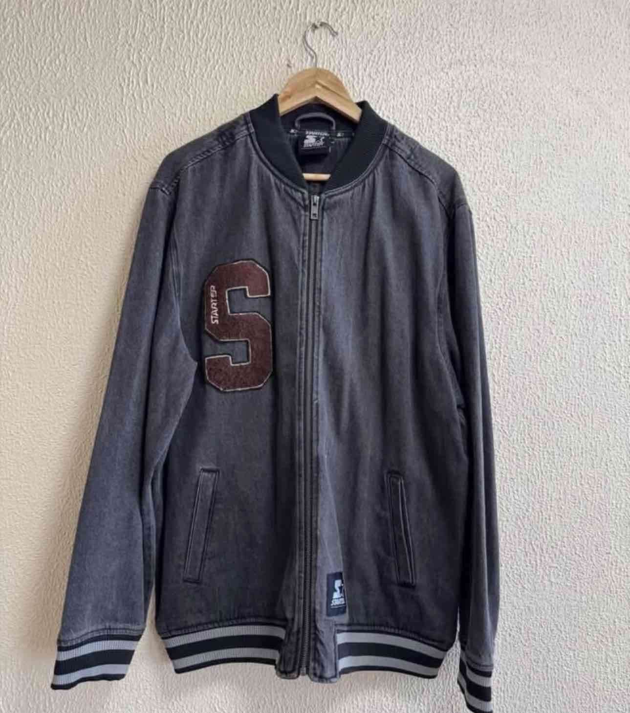 Chaqueta estilo varsity en color gris con detalles bordados. Ideal para un look casual y deportivo.