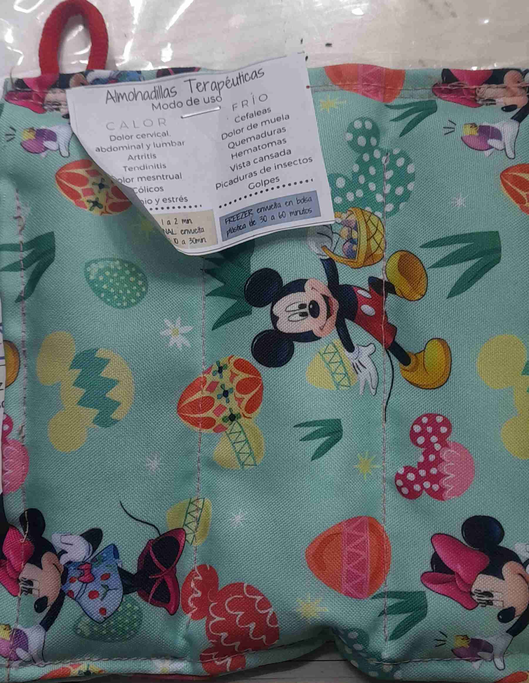 Almohadilla terapéutica para frío y calor con diseño de Mickey Mouse. Ideal para aliviar dolores y molestias. Estado nuevo en bolsa.