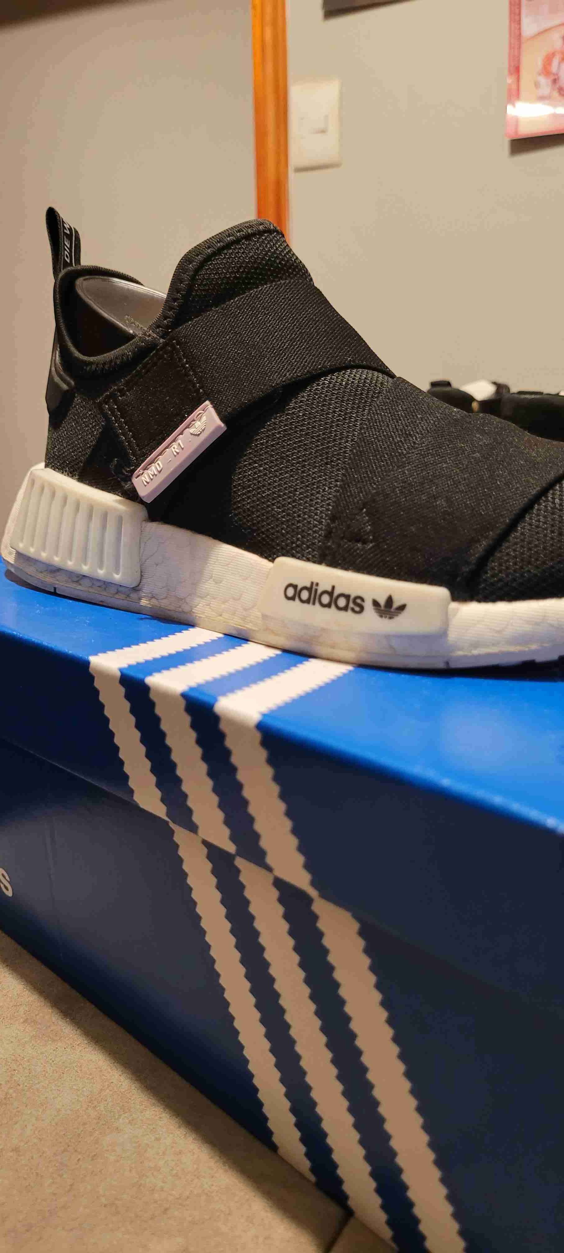 Zapatillas de mujer Estilo moderno y urbano, en buen estado general. Perfectas para el uso diario. -Zapatillas adidas de la línea originals -modelo: NMD_R1 -tecnología: boost en la entresuela. Zapatillas perfectas para quienes están todo el día en pie, o tienen una rutina muy ajetreada físicamente, la tecnología boost permite un retorno de energía.