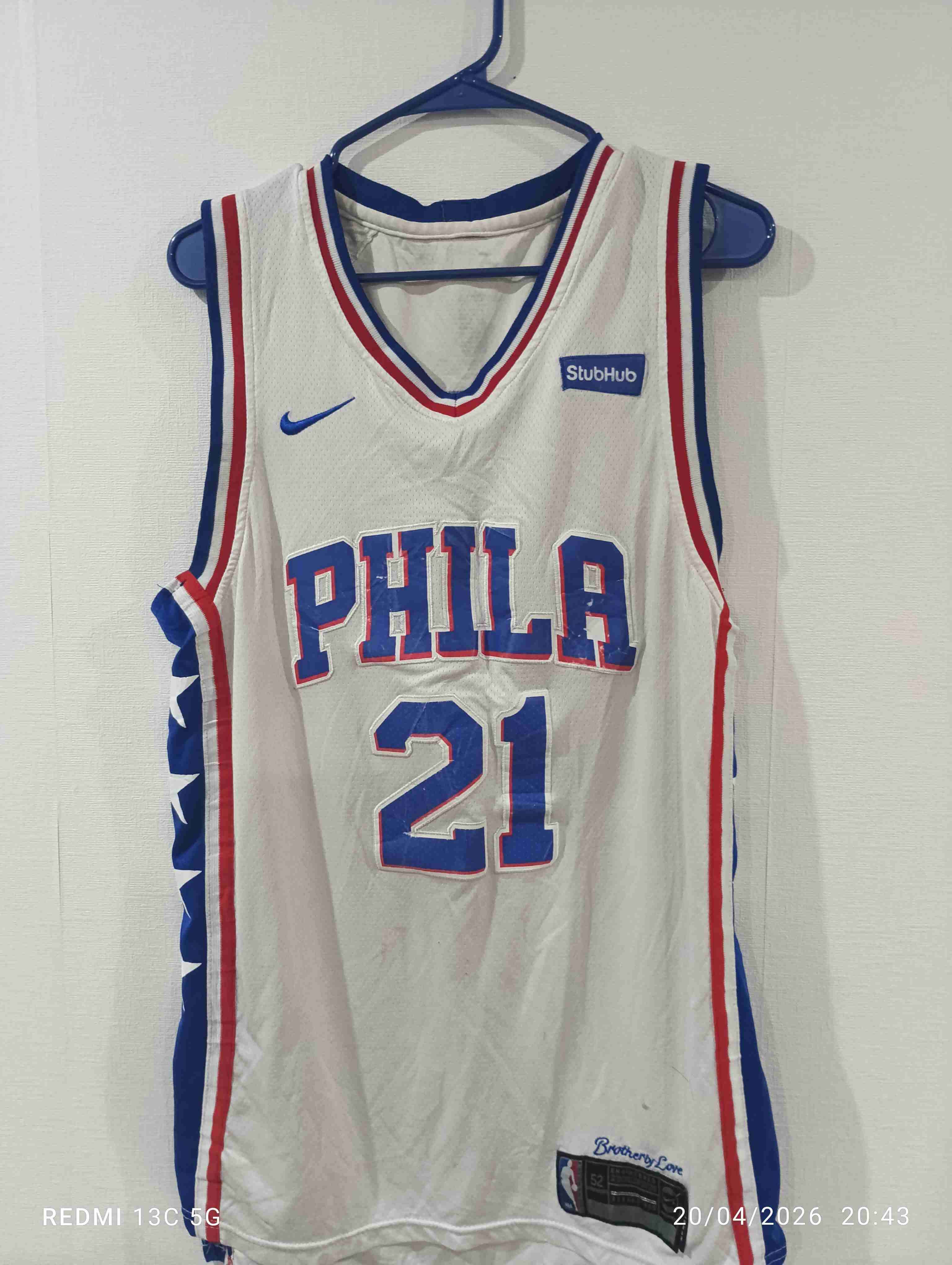 Camiseta de baloncesto blanca de los Philadelphia 76ers, en buen estado. Ideal para fanáticos del básquetbol.