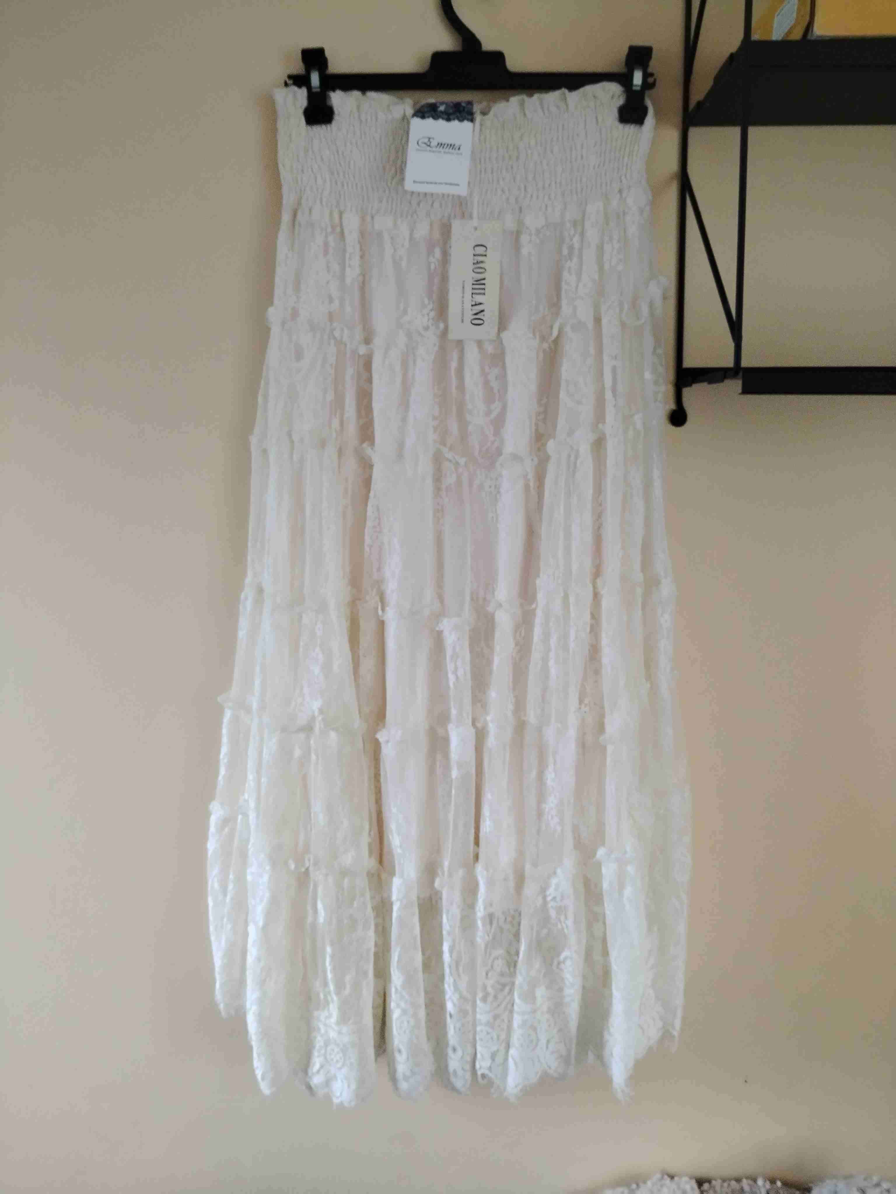 Falda larga blanca con detalles de encaje, ideal para ocasiones especiales. Estado impecable, con etiqueta.