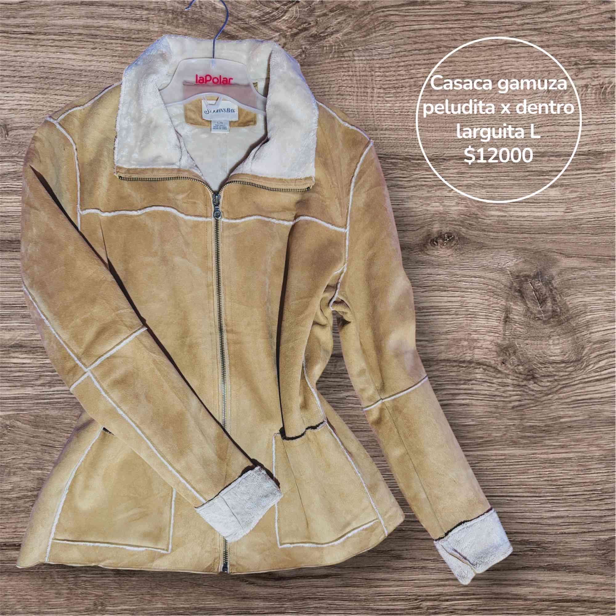 Chaqueta de gamuza beige con interior peludo, ideal para el frío. Está en buen estado general.