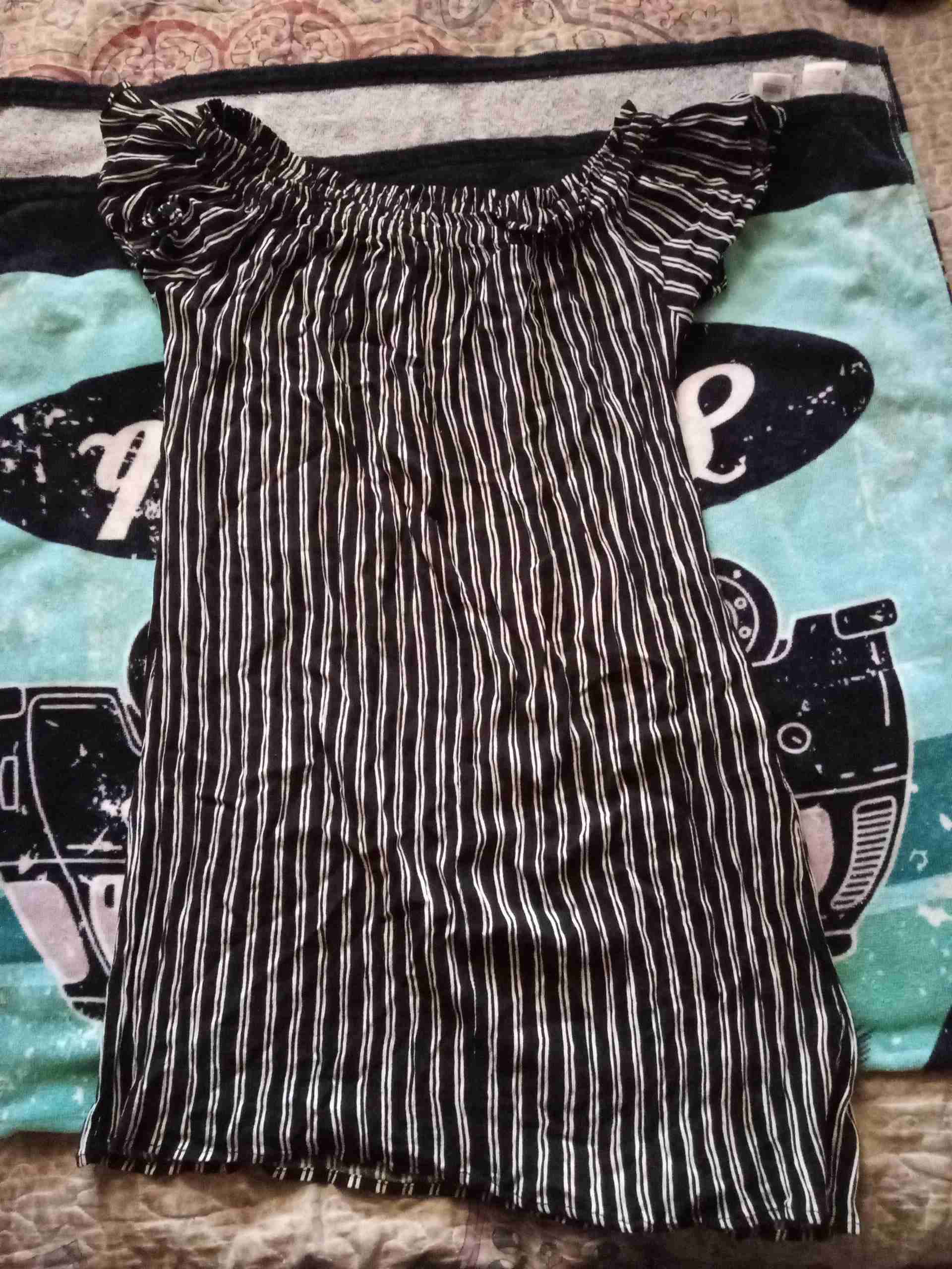 Vestido corto con patrón de rayas en negro y blanco. Ideal para verano, en buen estado.