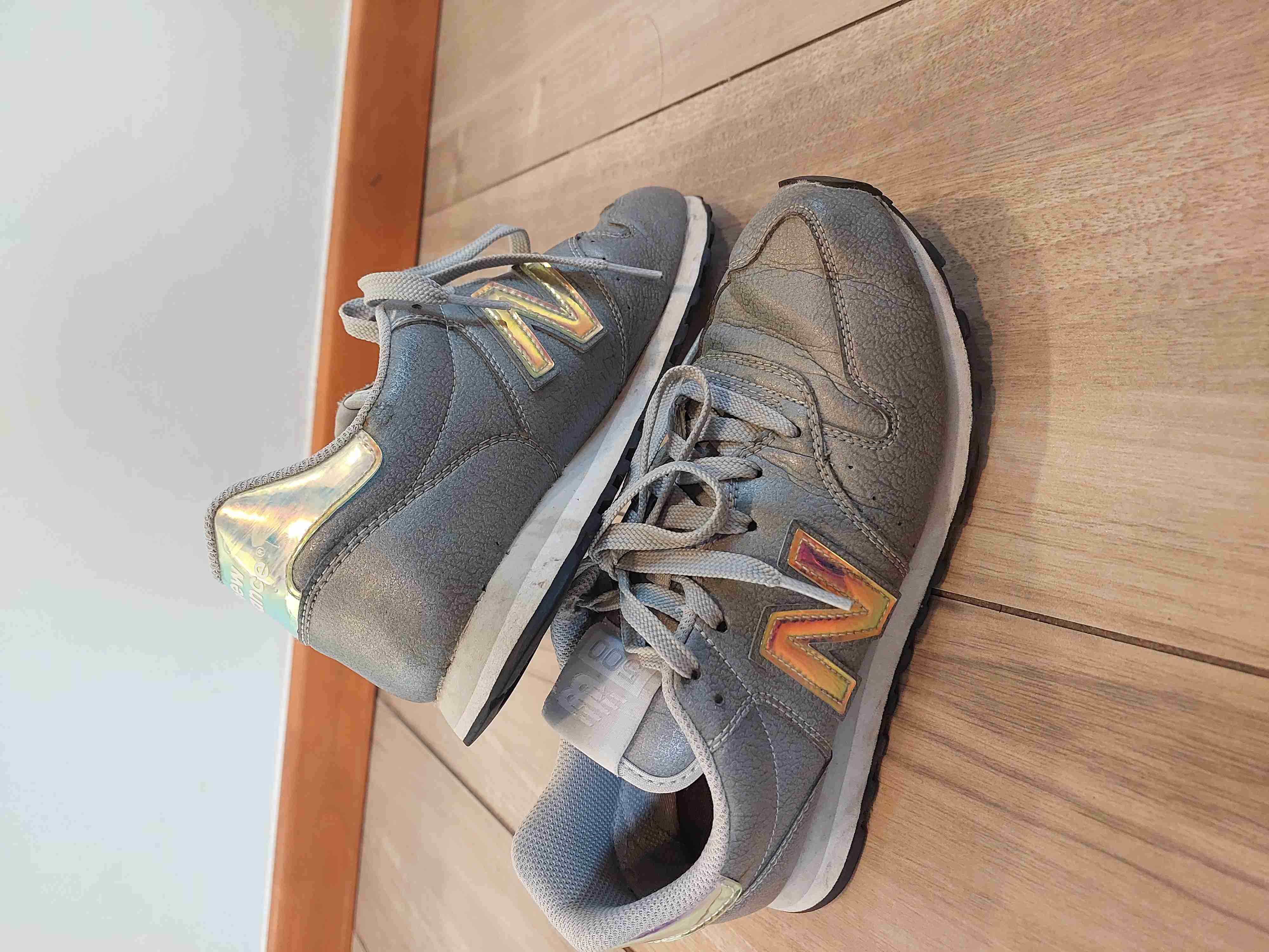 Zapatillas deportivas New Balance en color gris, cómodas y con detalles reflectantes. En buen estado, ideales para el uso diario.